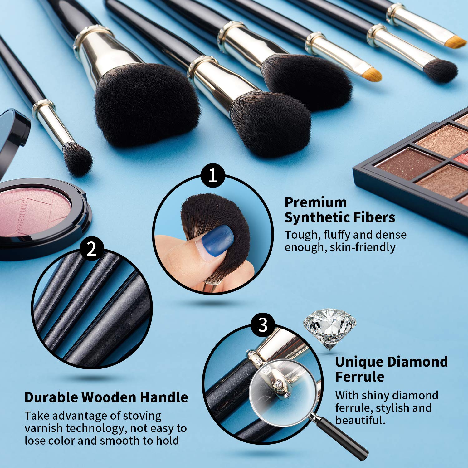 Makeup beginners and enthusiasts, the black makeup brush kit is a selected gift for mom, wife, female friends at any occasion-Christmas, Thanksgiving Day, Mother’s Day, wedding anniversary and so on.
