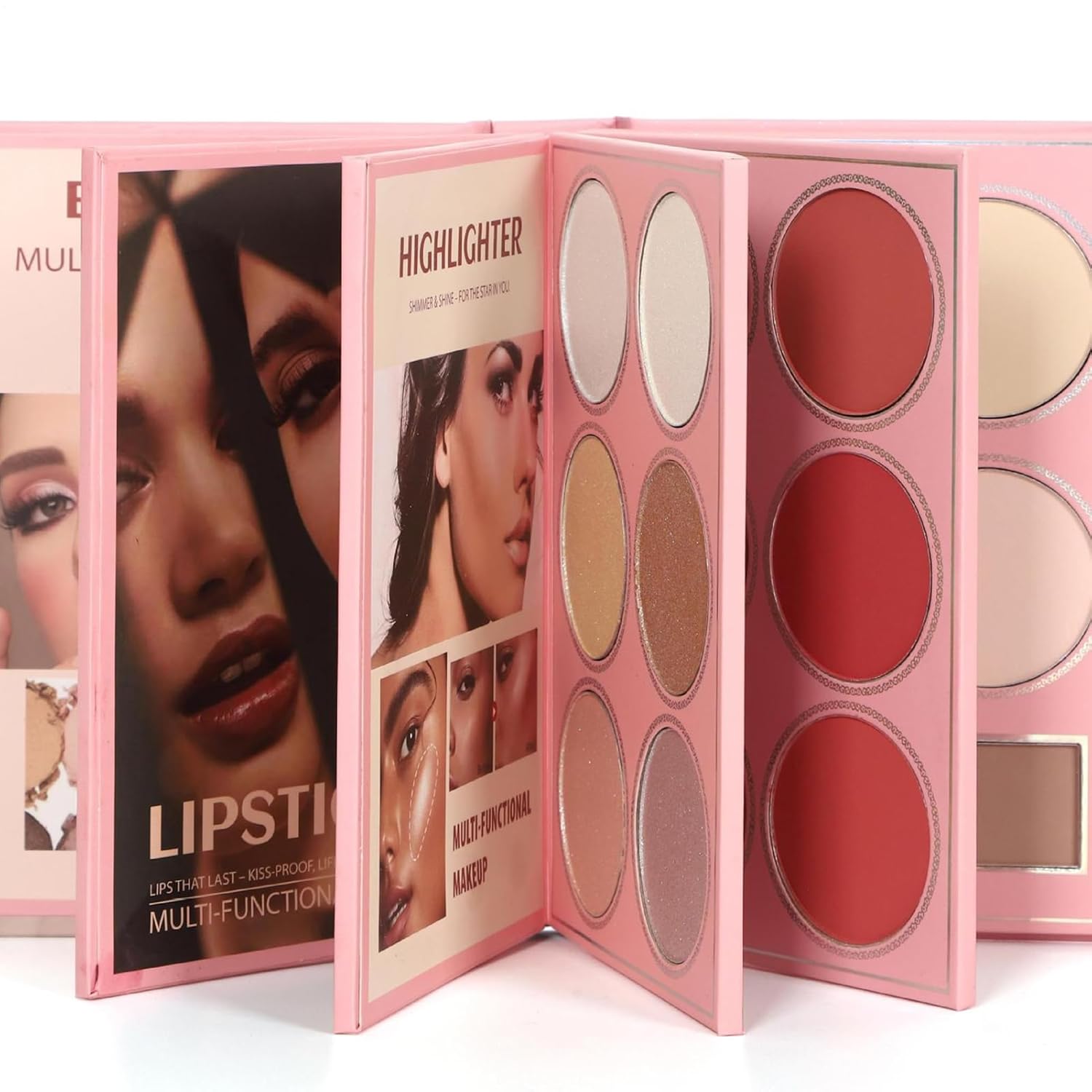 Makeup Kit: The makeup book palette combines a complete makeup kit with s versatile shades for day to night transformations, ensuring effortless beauty routines while traveling since no extra products are needed for full looks while moving