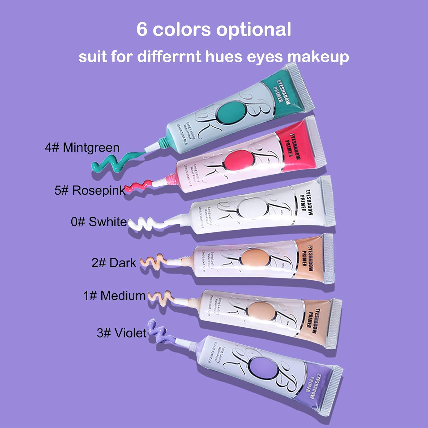 ???? COLORFUL MATTE EYESHADOW PRIMER FOR ALL SKIN: The primer is light, evenly applied, easy to push,beautiful in use,prolong the wear of your eyeshadow and even intensify the pigments,without any accumulation or spots,strong concealing power.This primer have 6 colors for choosing: white, medium, dark, violet, mint green and rose pink. You can choose a color similar to your skin or your makeup, meet your desire.