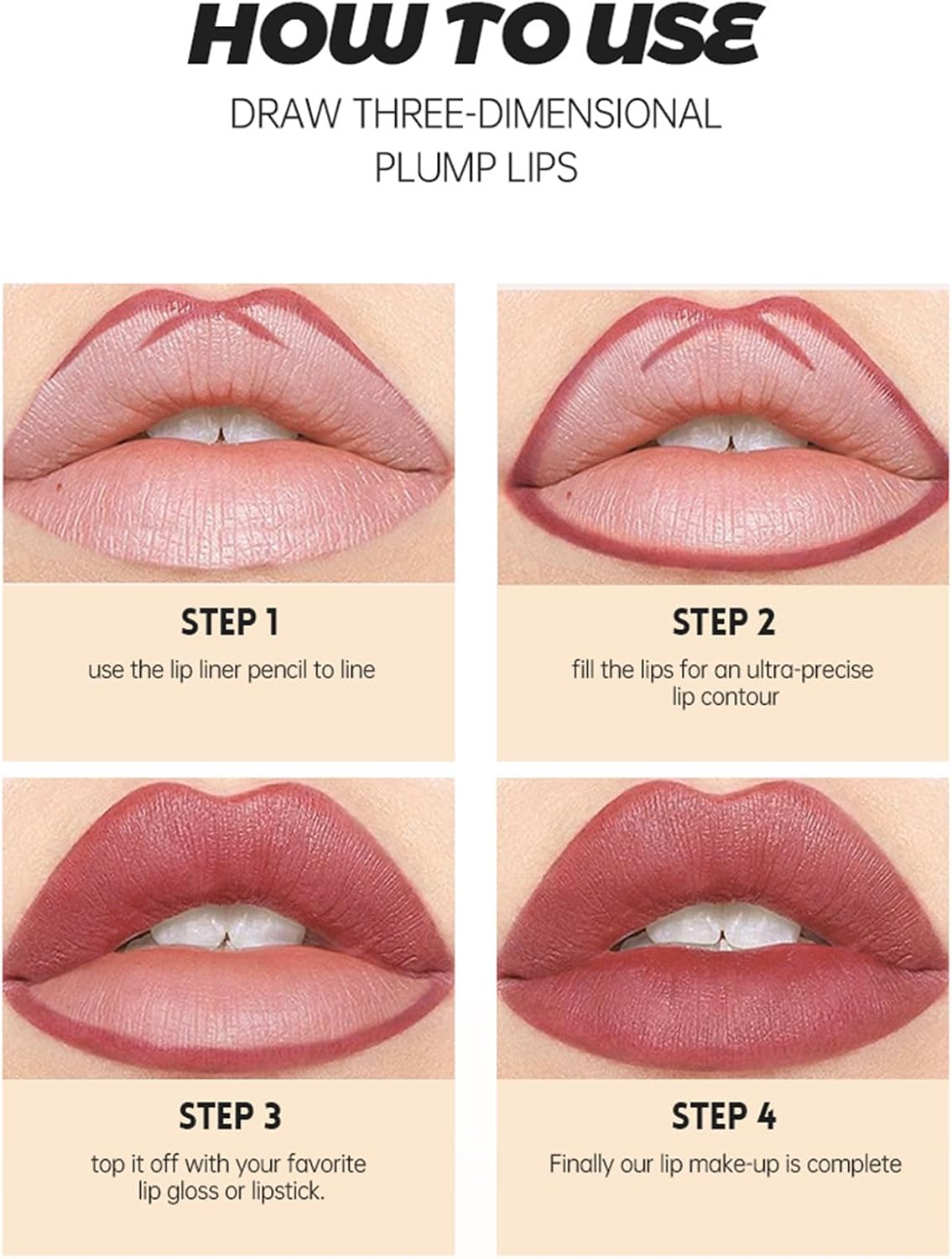Smooth and creamy,this lip liner is infused with moisturizing ingredients, smooth and creamy that applies smoothly without pulling or tugging.it is perfect as the lip base for any gloss or lipstick or to wear alone.