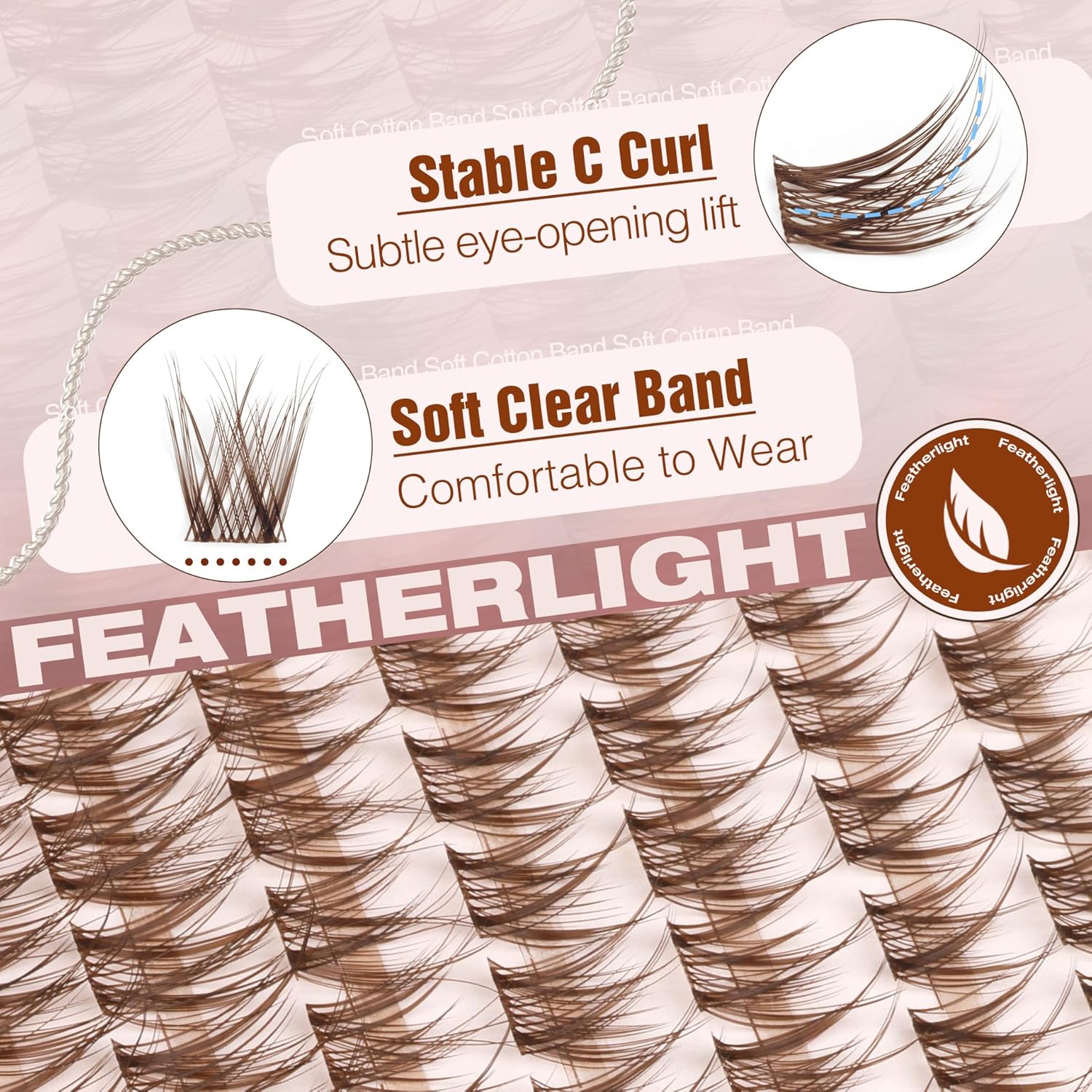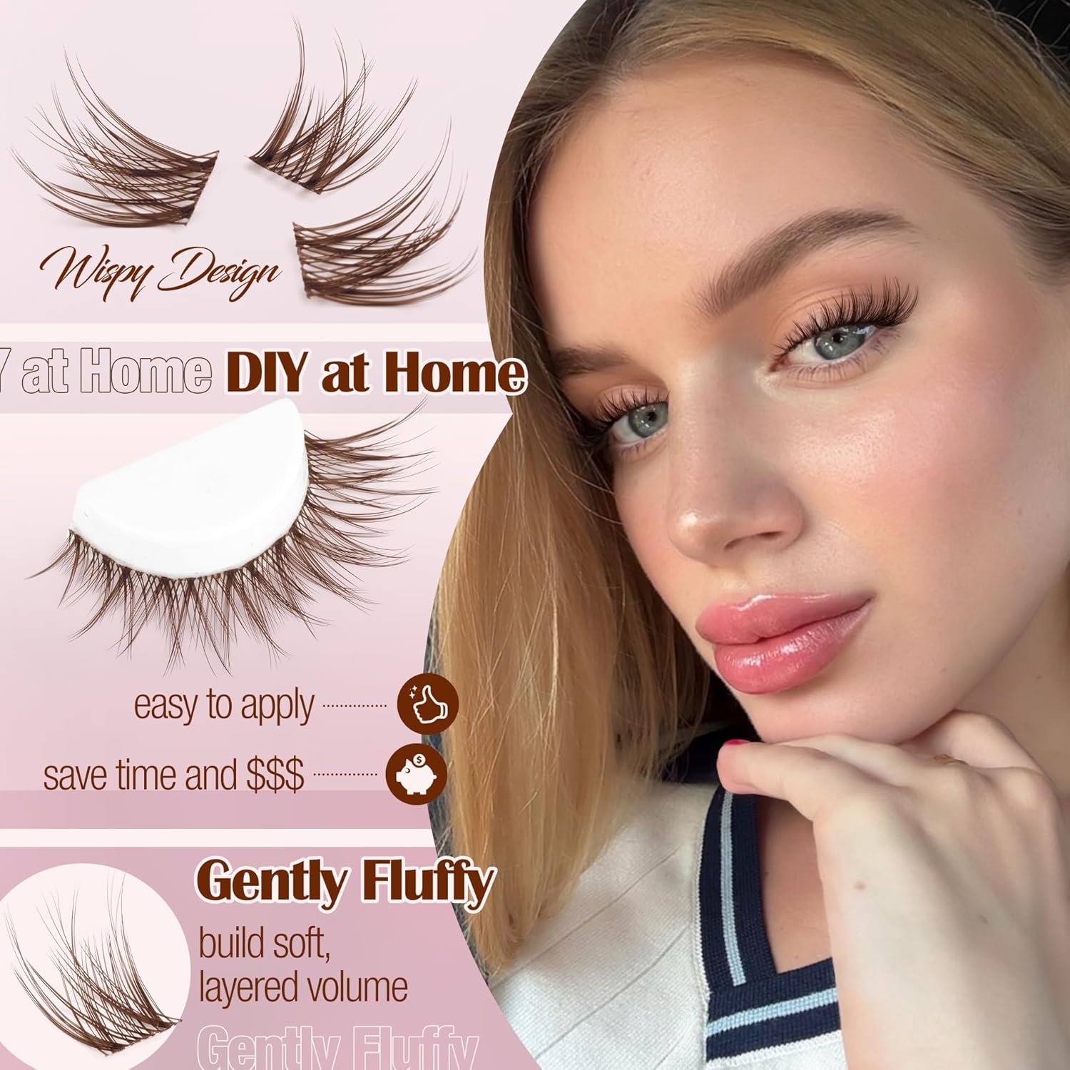 【Reusable Everyday Lashes: 15+ Wears of Effortless Beauty】Maximize your beauty investment! These high-reuse cluster lash extensions retain their shape and fluff through 15+ applications with proper care (tip: store in included tray!). The tangle-resistant fibers and durable band withstand gentle removal and cleaning, making these brown lashes clusters the ultimate budget-friendly lashes. From school drop-offs to date nights, they deliver consistent, salon-worthy lashes extensions results – your go-to for low-maintenance glam, minimalist makeup routines, and enhancing natural beauty daily.