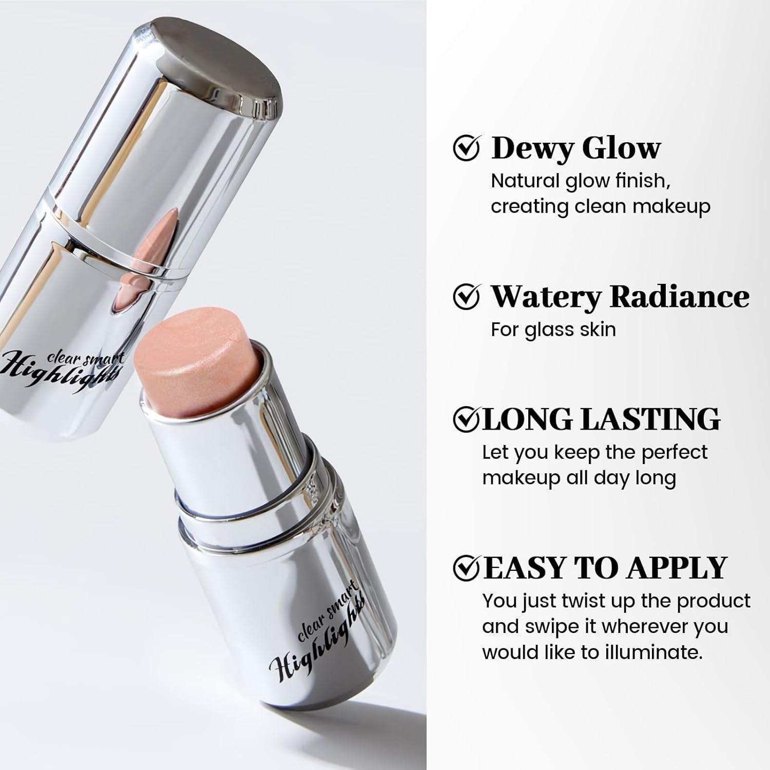 Dewy Glass Skin Highlighter Stick: Achieve a luminous, glass-like finish with our Clear Highlighter Stick! This dewy highlighter balm delivers a radiant, diamond-like shimmer while enhancing your natural glow. Perfect for creating a healthy, multidimensional look, it blends seamlessly for a fresh, lit-from-within effect