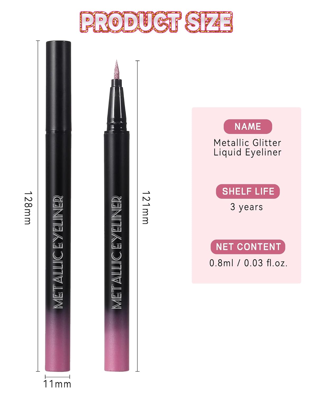 Metallic Glitter Effect – Shimmer eye liner with metallic glitter particles is vegan and cruelty-free, lightweight on the eyelids, making it easy to wear all day long. Highly pigmented metallic shimmer adds a unique look to your eyes.