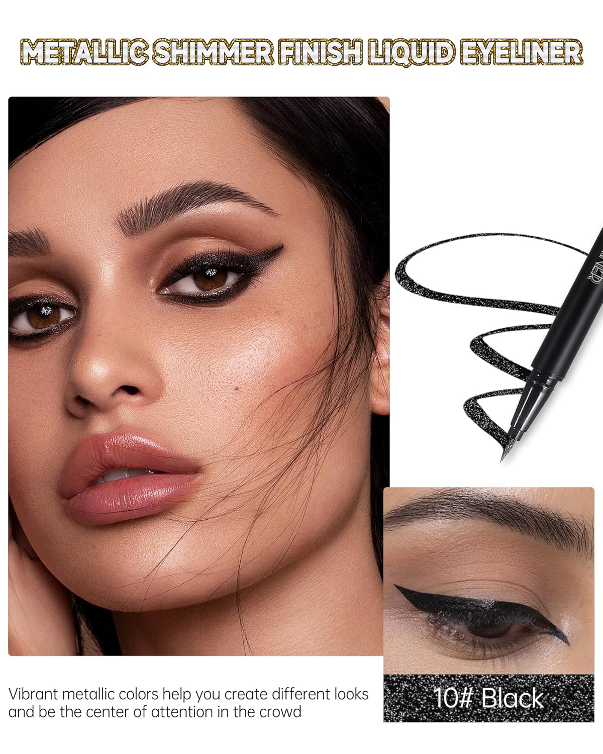 Metallic Shimmer Liquid Eyeliner, Black Glitter Eyeliner Waterproof Long-Stay 24H, Sparkling Finish Eye Liner Pen, Ultra-Fine Tip & Smooth Application, High Pigmented Smudge-Proof Makeup for Women-10