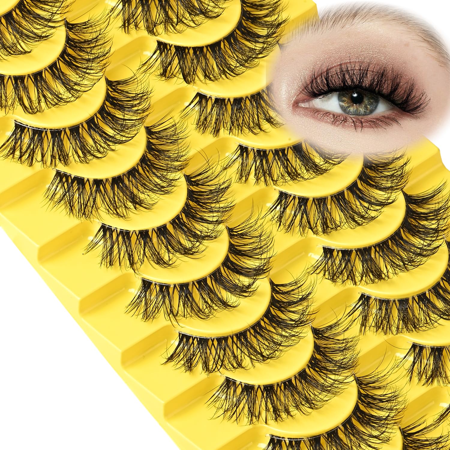Mink Lashes Clear Band Natural Eyelashes 10 Pairs Reusable Fake Lash 6D Curl Short False Eyelash Small Volume Cluster Strip Lashes Wispy Eyelash Packs