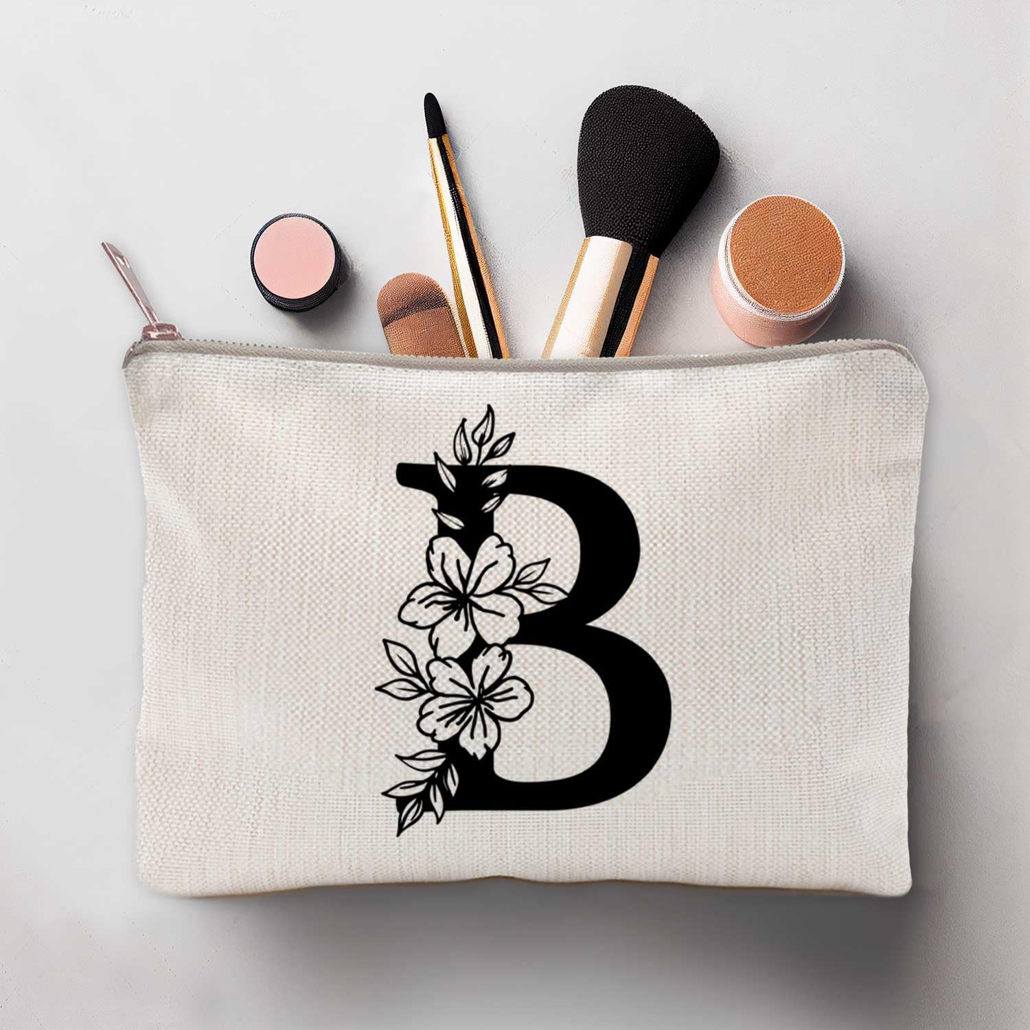 Versatile Design: Whether you’re looking for a floral makeup bag for travel, a custom make-up bag for gym use, or simply a stylish organizer for your beauty products, this initial cosmetic bag is the perfect choice.