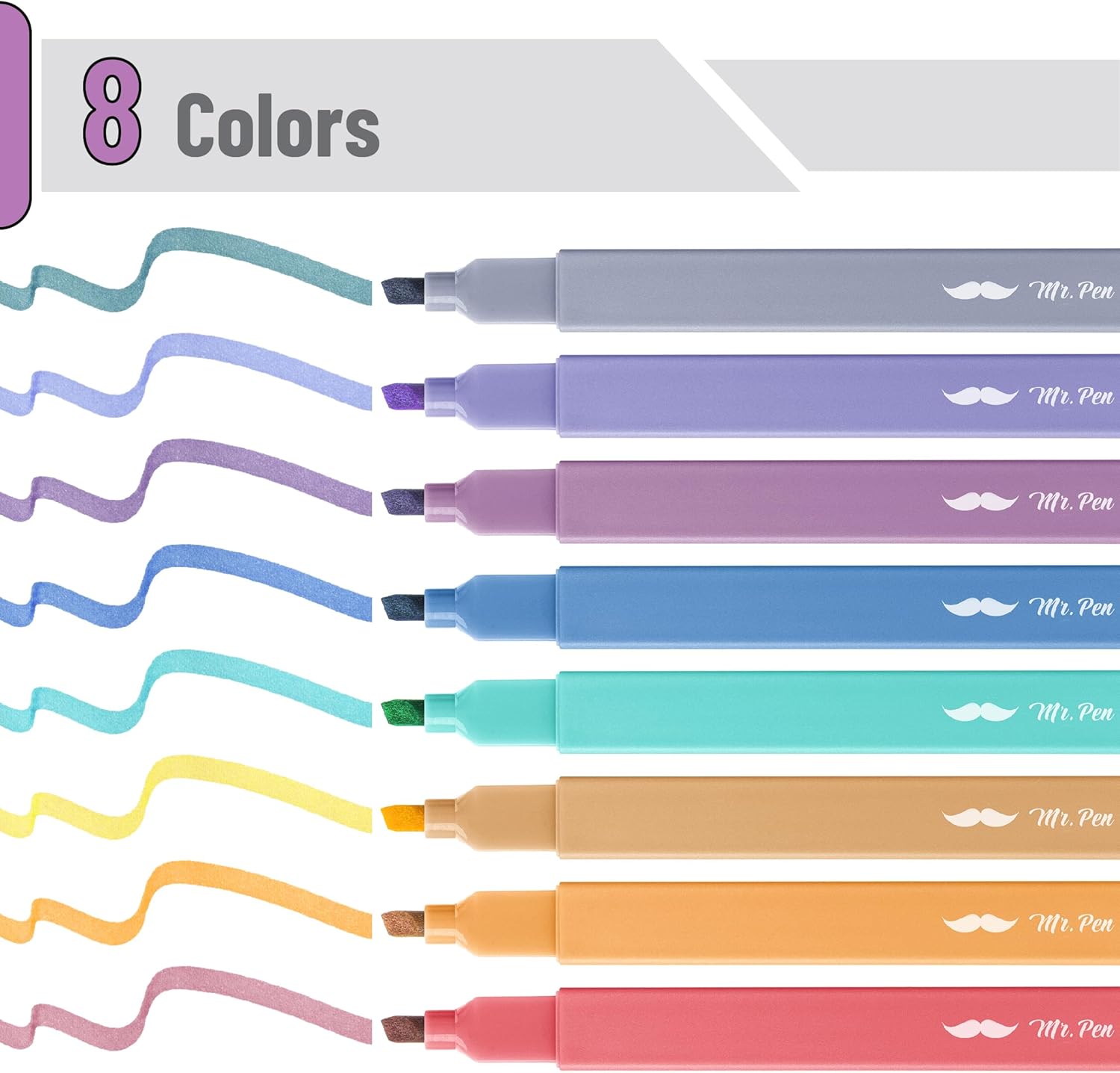 - Mr. Pen aesthetic highlighters come in a set of 8, offering a range of vibrant pastel colors for all your highlighting needs.