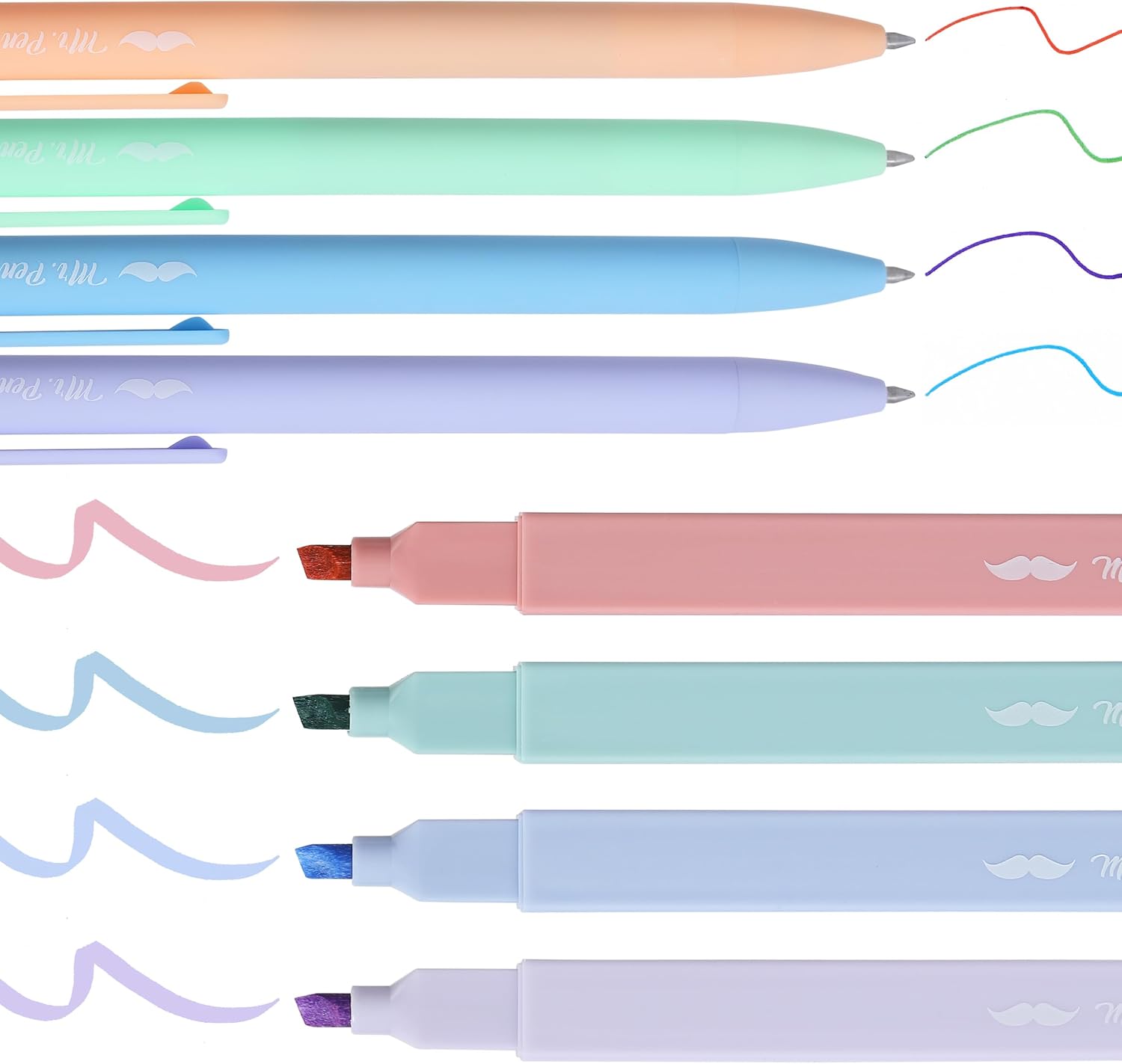 Package includes 4 highlighters in a delightful assortment of non-neon, soft, and beautiful colors and 4 retractable gel pens in assorted colors, offering a versatile and coordinated set for all your writing and highlighting needs.