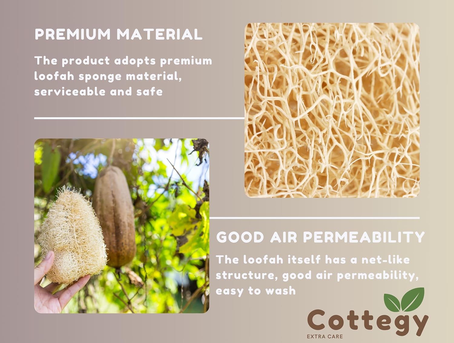 The product adopts premium loofah sponge material, serviceable and safe.