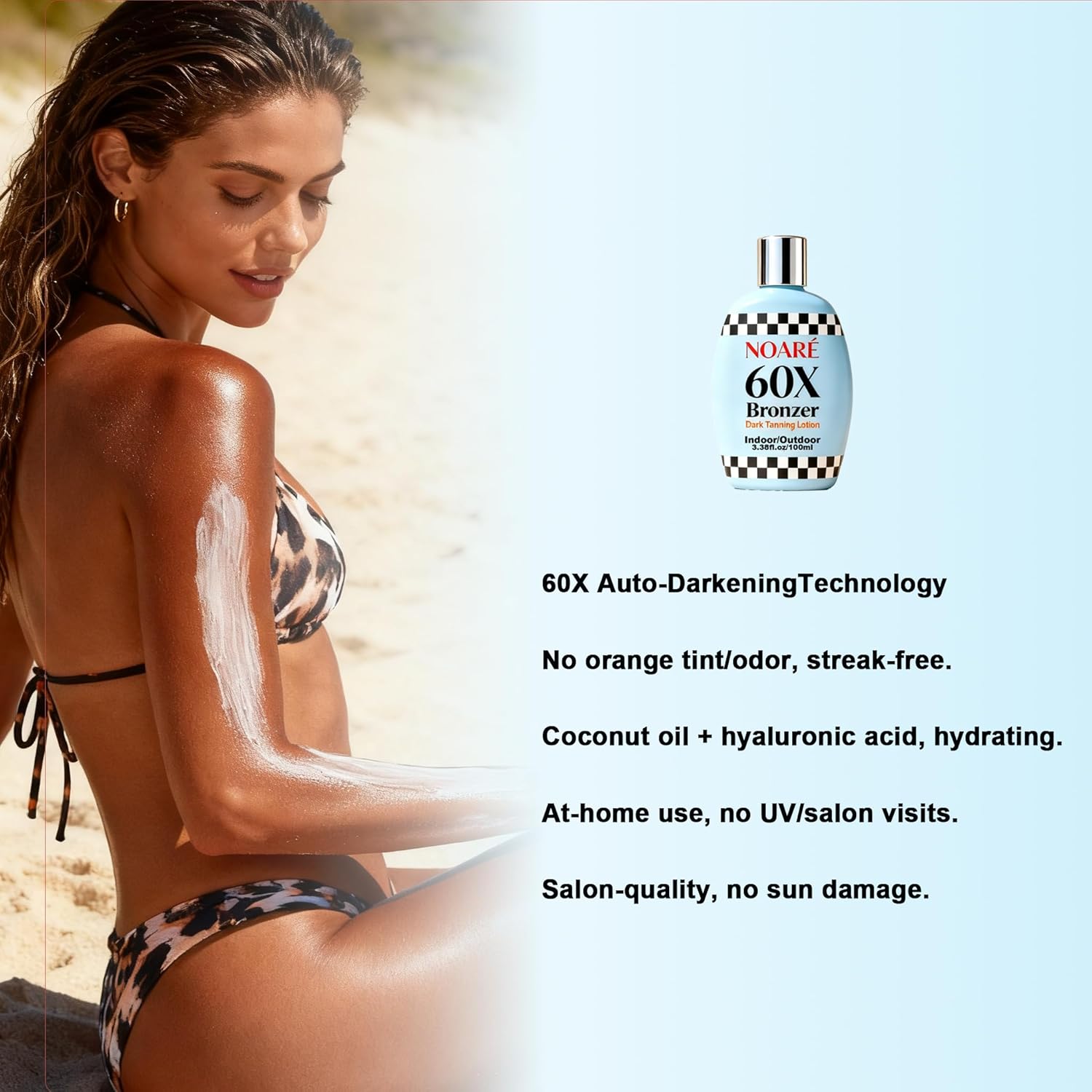 NOARÉ 60x Bronzer Dark Tanning Lotion – 30-Min Fast Natural Tan, Hydrating Formula with Encapsulated DHA, Coconut Oil & Hyaluronic Acid, 3.38Fl Oz (100ml) (1)