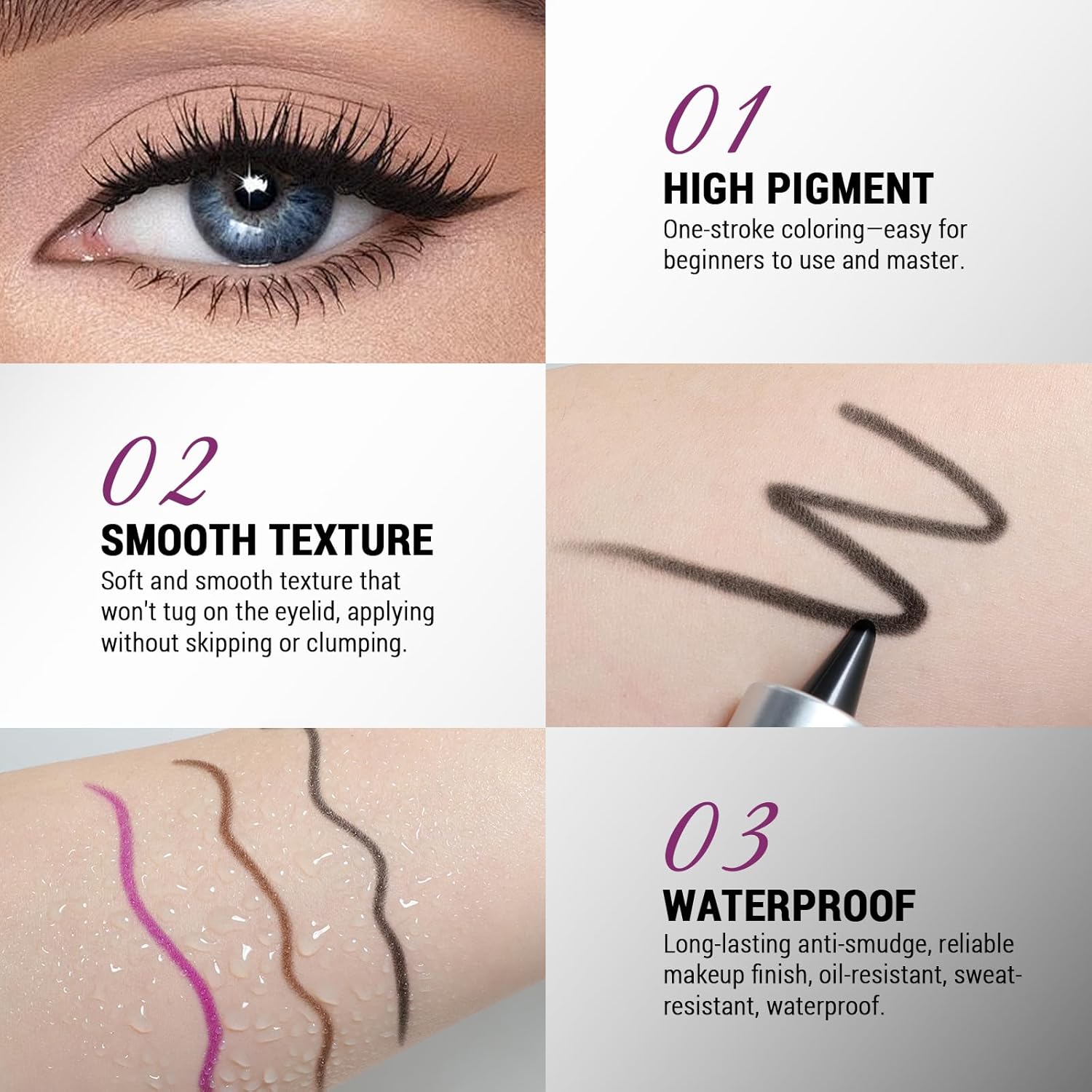 Highly Pigmented & Glides On Smoothly: Our creamy, high-pigment formula delivers intense color in a single stroke. Unlike tricky liquid liners, it applies smoothly without tugging, skipping, or clumping. The velvety texture blends effortlessly, ensuring even and consistent lines every time. Enjoy a flawless application that helps you achieve stunning, professional-looking eyeliner with remarkable ease