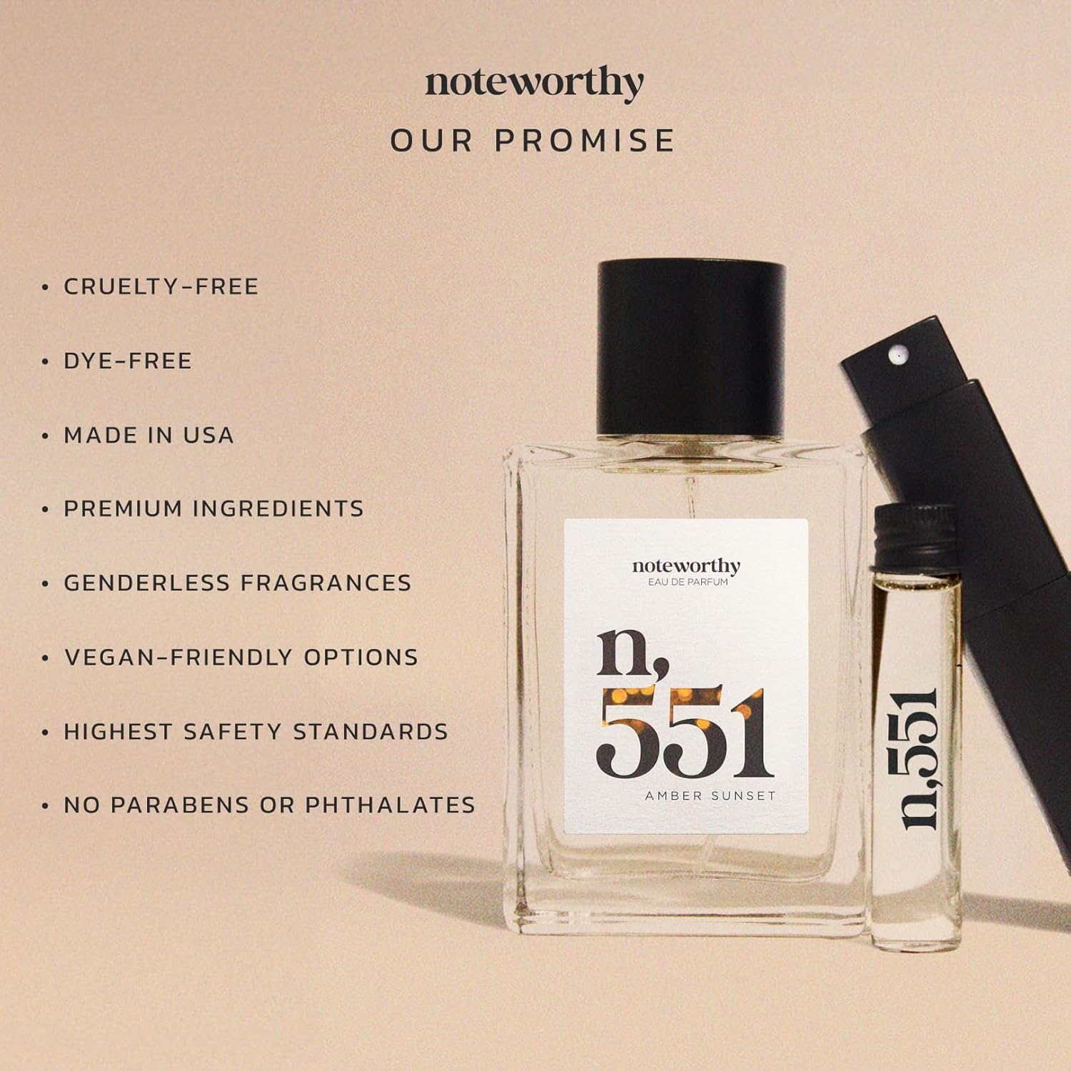 Noteworthy n,551 Amber Sunset Eau De Parfum – Lily of the Valley, Amber, Sandalwood | Sophisticated, Warm Fragrance for Any Occasion | Long-lasting Unisex Perfume for Women & Men (100ml)