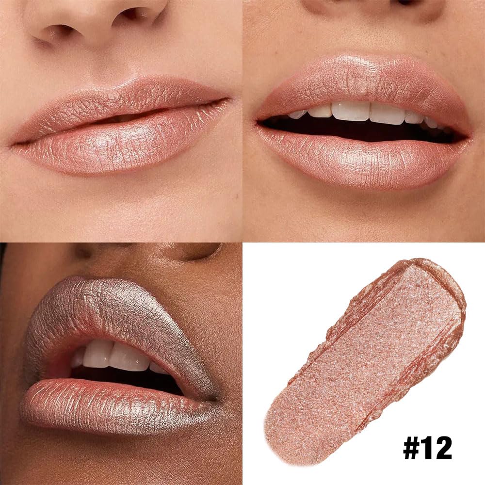 Nude Brown Shimmer Metallic Moisturizing Glow Plumping Lipstick Makeup, Lipstick with Metallic 3D Shine Lightweight Hydrating Formula, Glitter Lip Gloss Stain Long Lasting Waterproof (12#Nude Brown)
