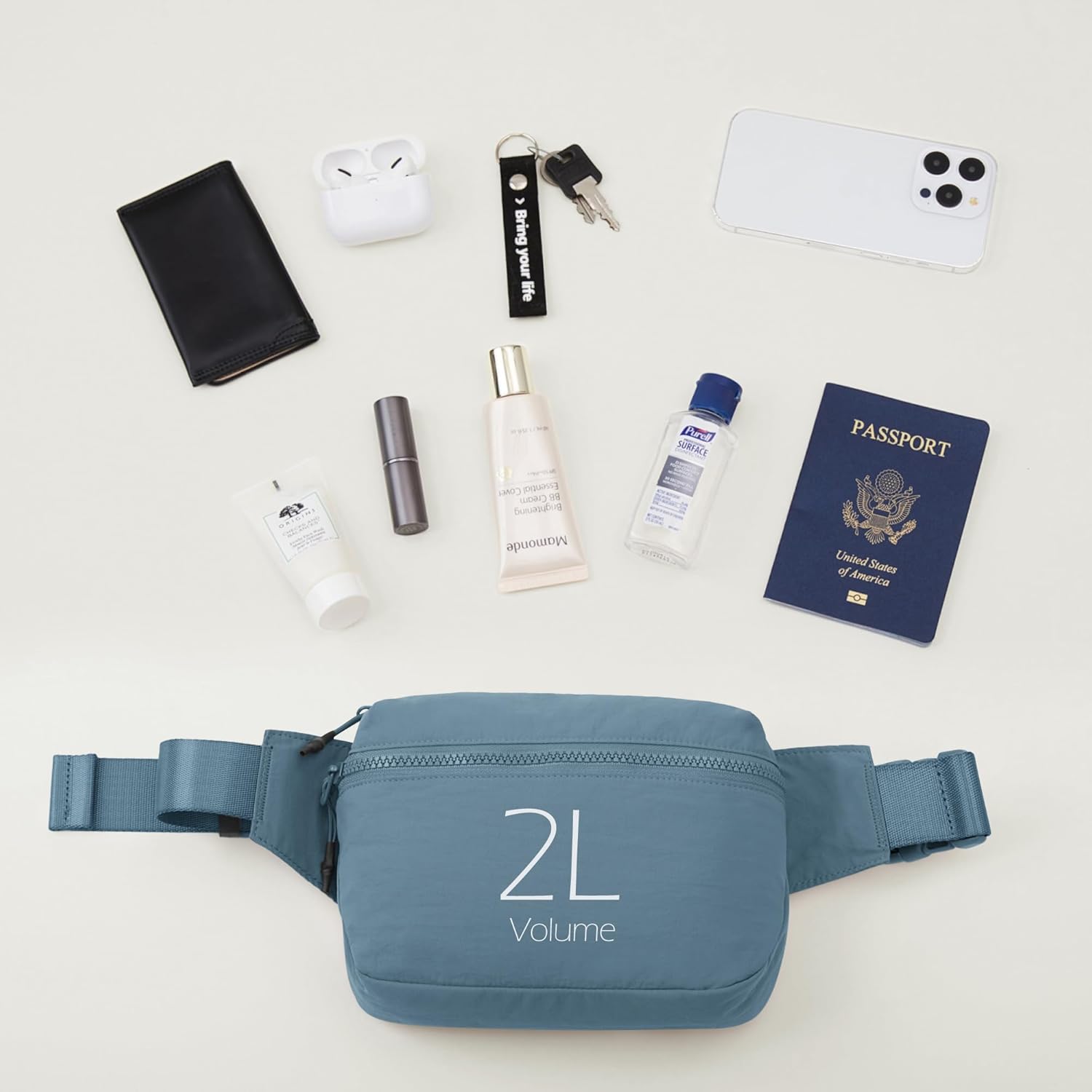 2L Large Capacity: Measure 8.5″ L x 5″ W x 2″ H. Exterior zippered pocket is large enough to hold your phone, sunglasses, earphone and wallet. Interior mesh fabric pocket keep items organized.