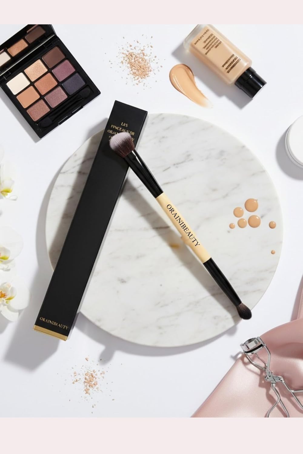 Stop switching brushes and start blending like a pro. The ORAINIBEAUTY Dual-Ended Brush was created for the modern woman who values efficiency without compromising on quality. We know the struggle of trying to blend concealer in the delicate eye area while needing precision for eye shadow and contouring. This 2-in-1 tool solves it all. The Large Angled End is dense enough to pick up the perfect amount of product yet soft enough to provide a seamless “airbrushed” buff. It’s specifically shaped to fit the contours of your under-eye and cheekbones. The Precision Tapered End acts as a detailer, allowing you to smudge shadows, define the crease, or apply highlight with surgical accuracy. Whether you are a professional MUA or a beginner, this brush replaces multiple tools in your kit, making it the perfect travel companion. How to Clean: Simply wash with mild soap and warm water. The high-quality synthetic fibers regain their shape instantly and won’t shed, ensuring your ORAINIBEAUTY brush stays in your collection for years