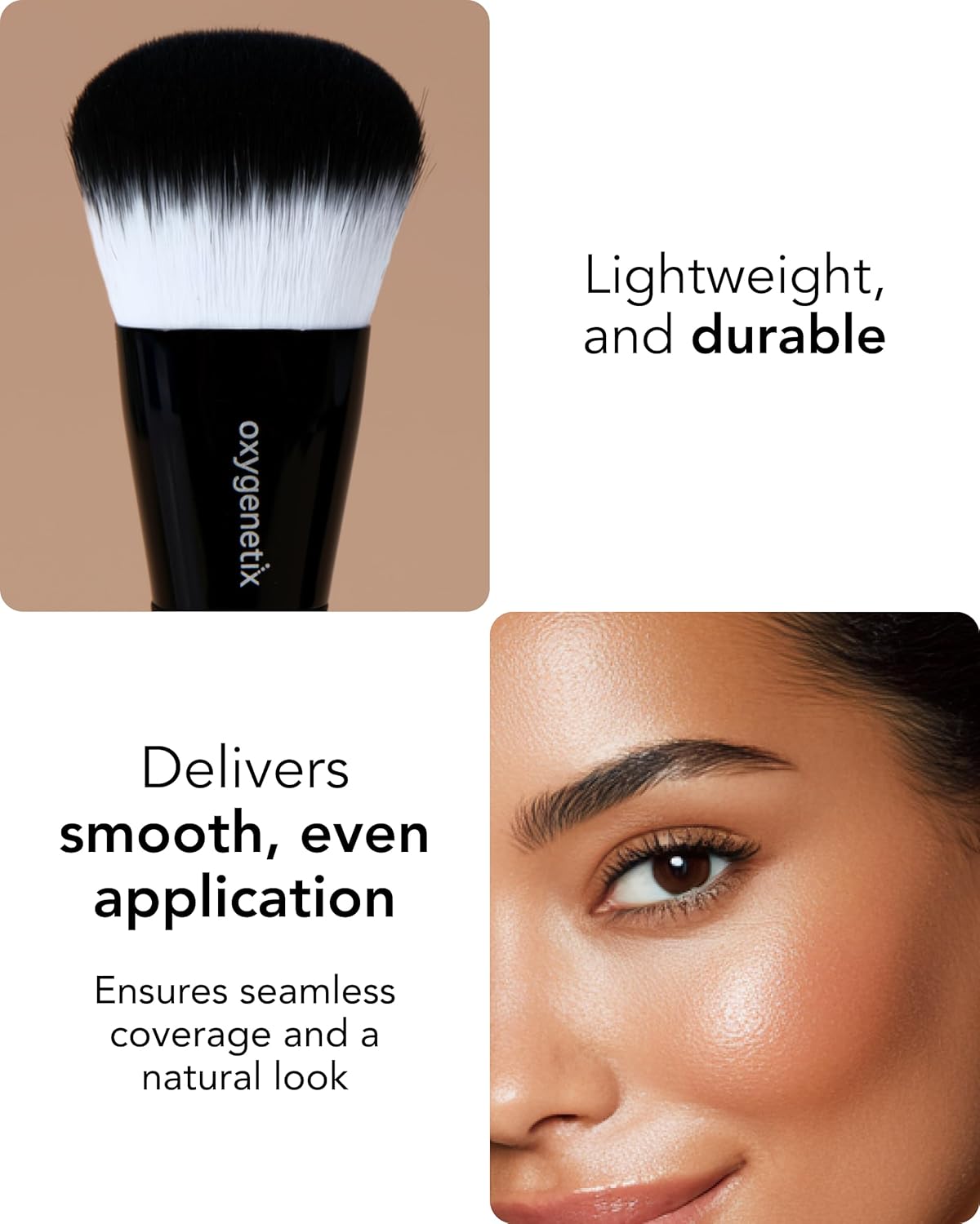 Eco-friendly makeup brush with vegan bristles and a plant fiber handle. Designed to pair perfectly with Oxygenetix Foundations, this multi-use face applicator also blends blush and bronzer seamlessly for a smooth, natural finish. Breathable, oxygenating foundation with organic aloe hydration. Lightweight, buildable coverage for sensitive, dry, or oily skin. Where luxury meets skin-loving performance—safe after laser and facial treatments. Lightweight, breathable foundation with salicylic acid and aloe vera for non-comedogenic coverage that helps control shine. Ideal for oily, combination, acne-prone, and sensitive skin, it smooths and evens tone for a fresh look. Full-coverage concealer for dark under-eye circles, spots, and discoloration. Hydrating formula with organic aloe creates a lightweight, breathable finish that’s safe for sensitive or post-facial skin. Lightweight aloe-based moisturizer delivers fast-absorbing hydration with a breathable feel. Powered by hyaluronic acid to support skin’s moisture barrier without clogging pores or leaving residue.