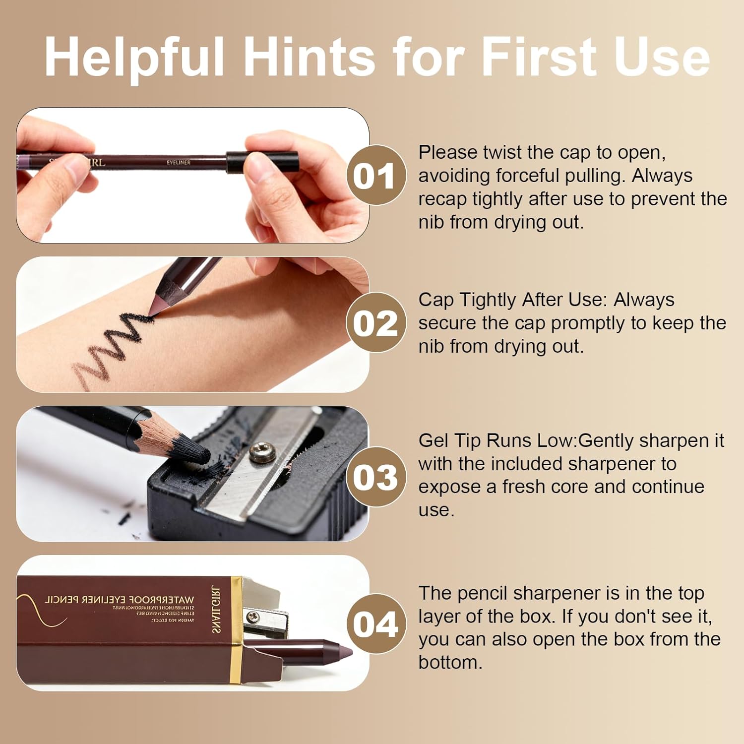 【Built-in Sharpener & 7 Shades】 Includes a built-in sharpener for a always-perfect point. Reusable and sustainable, this eyeliner offers an intense color experience. Choose from seven versatile shades to create polished, defined eye looks with ease.Explore shades like a vibrant plum eyeliner for green eyes to enhance your natural beauty.