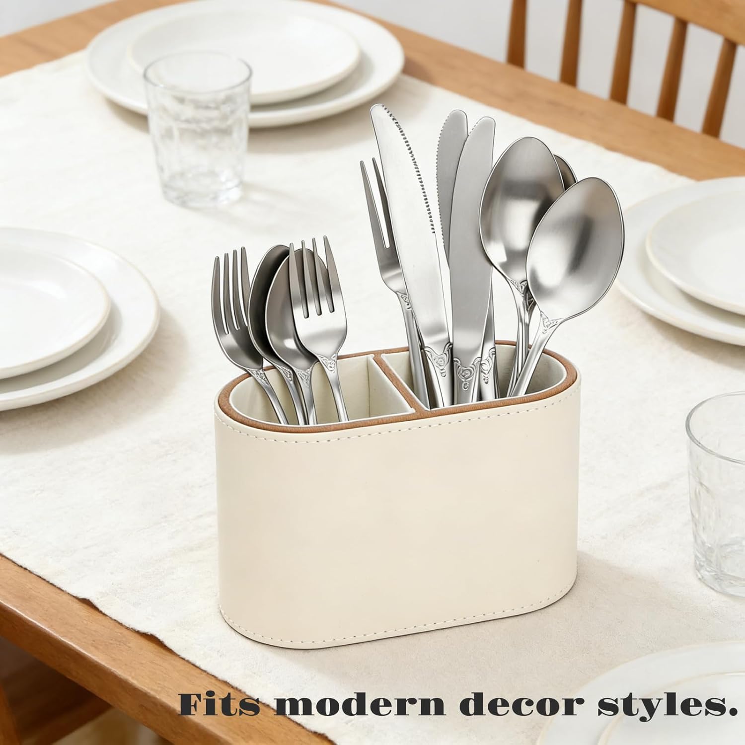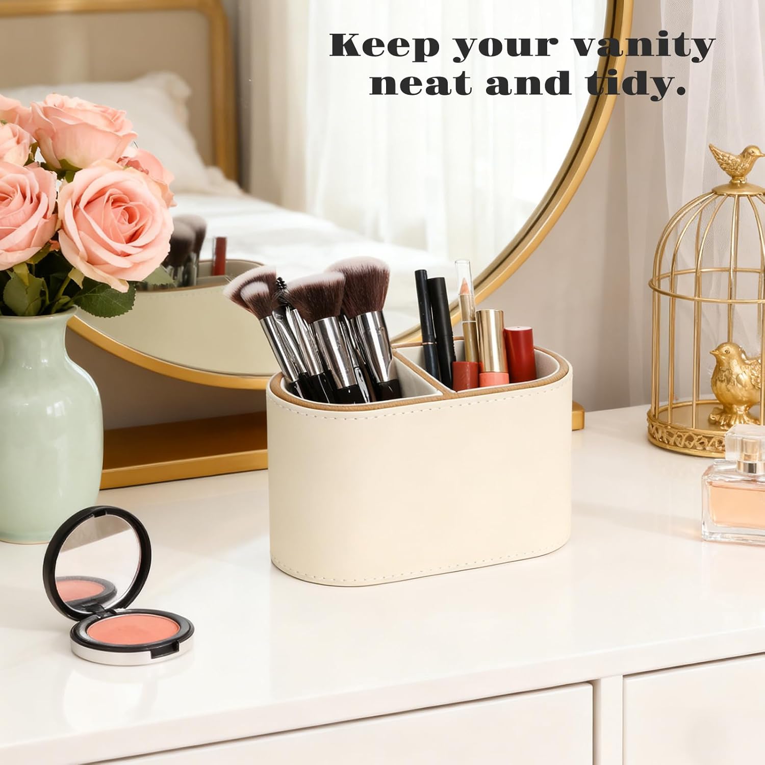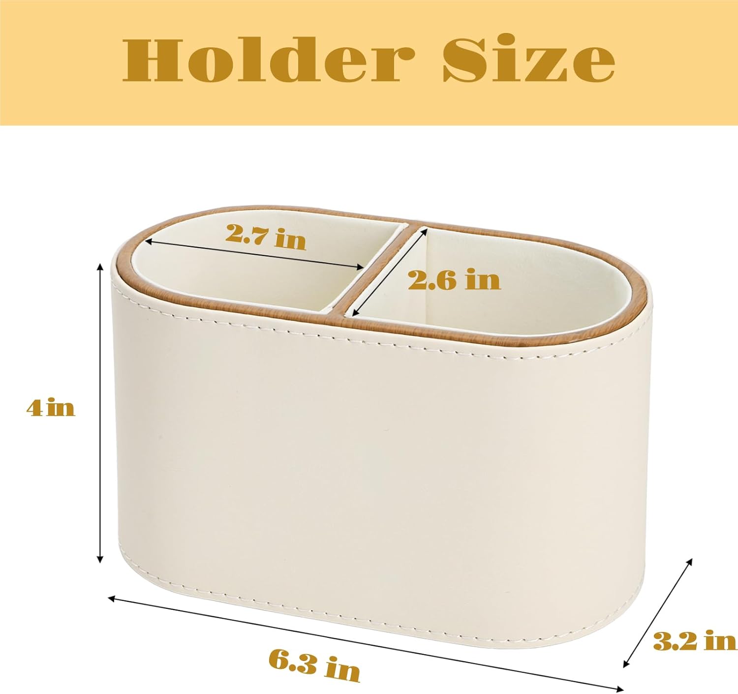 Modern Style: Featuring a symmetrical elliptical design and classic combo of white and khaki, our modern desk organizer caddy brings a subtle touch of sophistication. It will always have a spot in your home, showcasing your stylish sense.