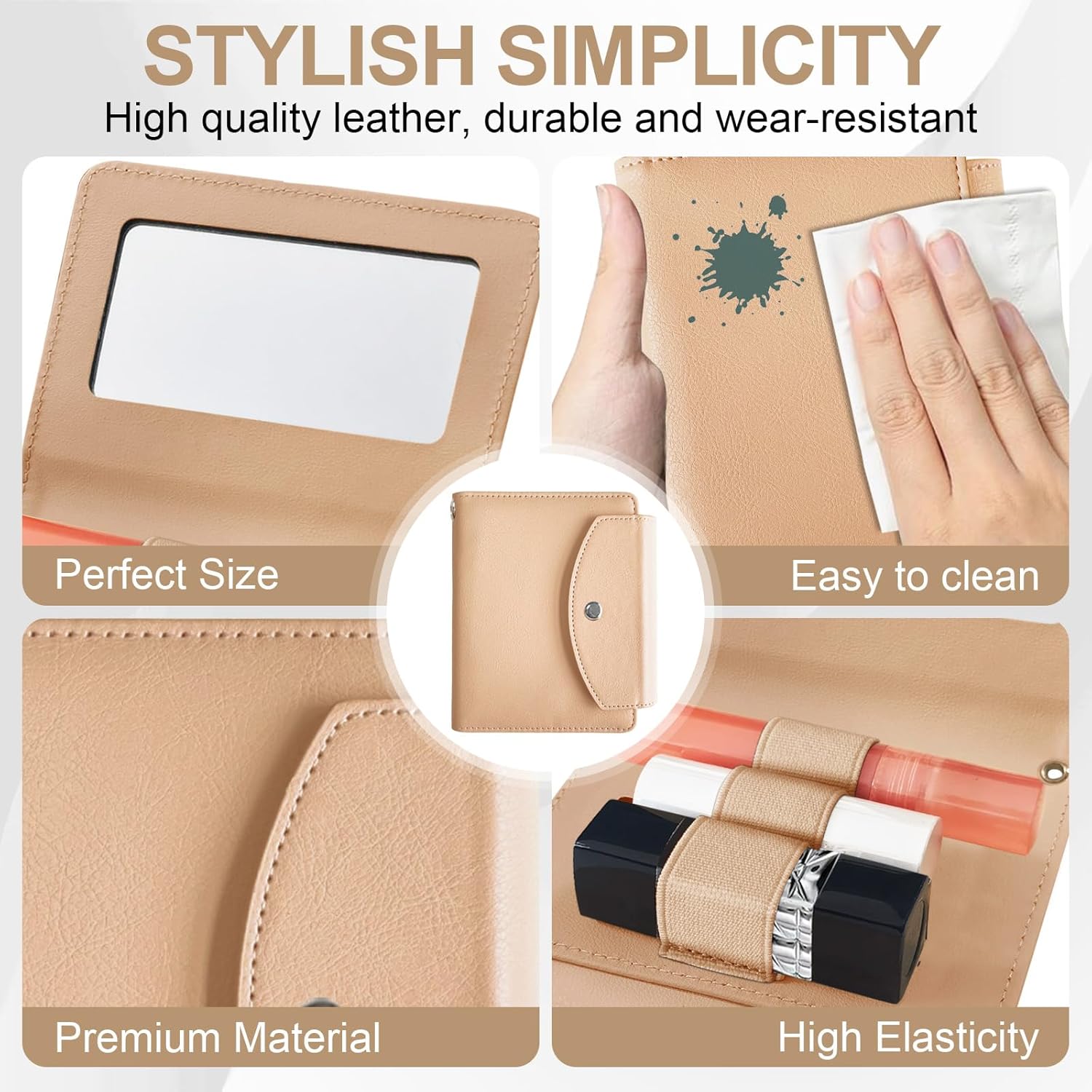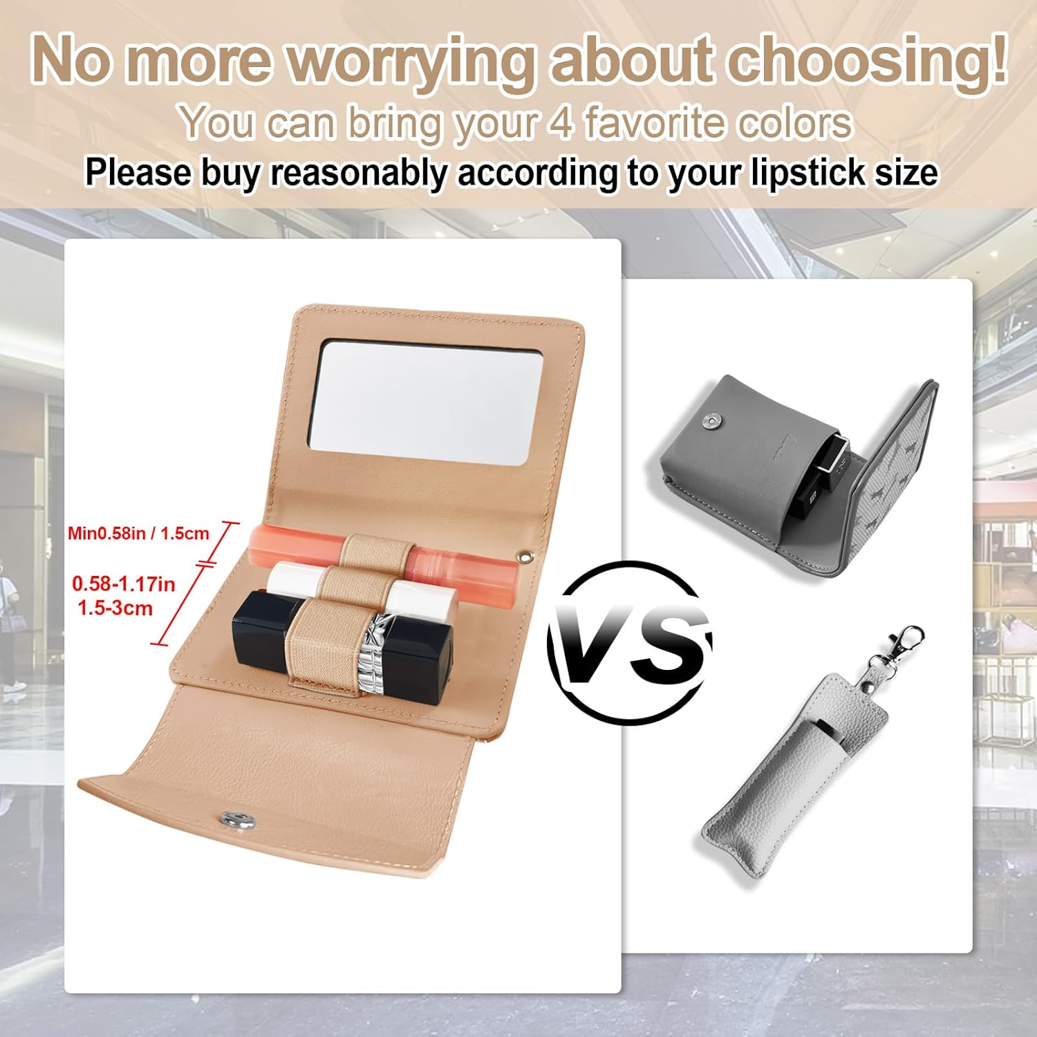 Lipstick Holder:This lipstick case can hold 3 lipsticks of various lengths.The lipstick case with mirror and convenient touch-ups on the go. Its portable design makes it easy to fit into a handbag or crossbody bag. With a keychain you can carry it more conveniently