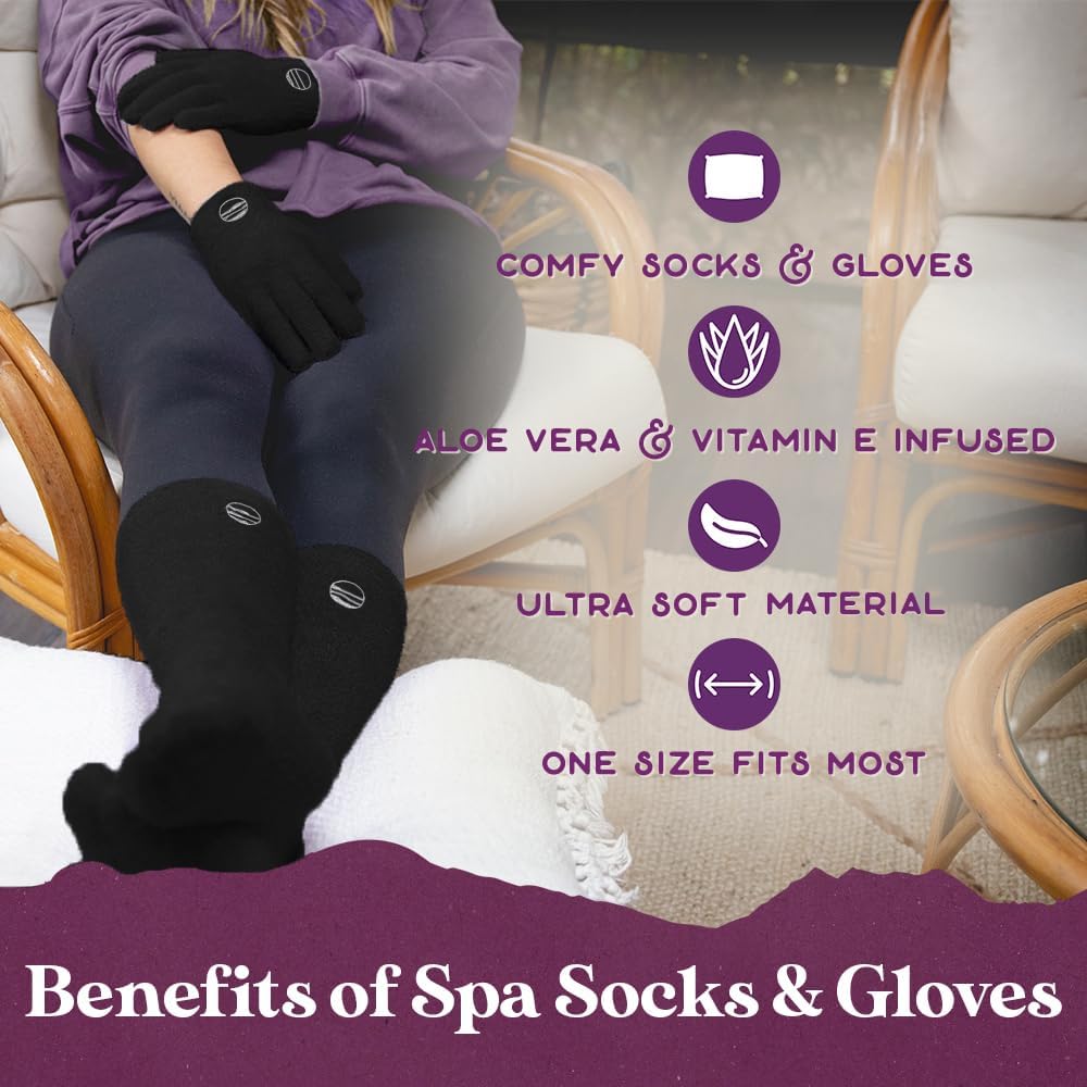 Purple Canyon Moisturizing Socks and Gloves Set | Black Fuzzy Socks and Gloves with Aloe and Vitamin E for Women | Women’s Gifts for Self-Care