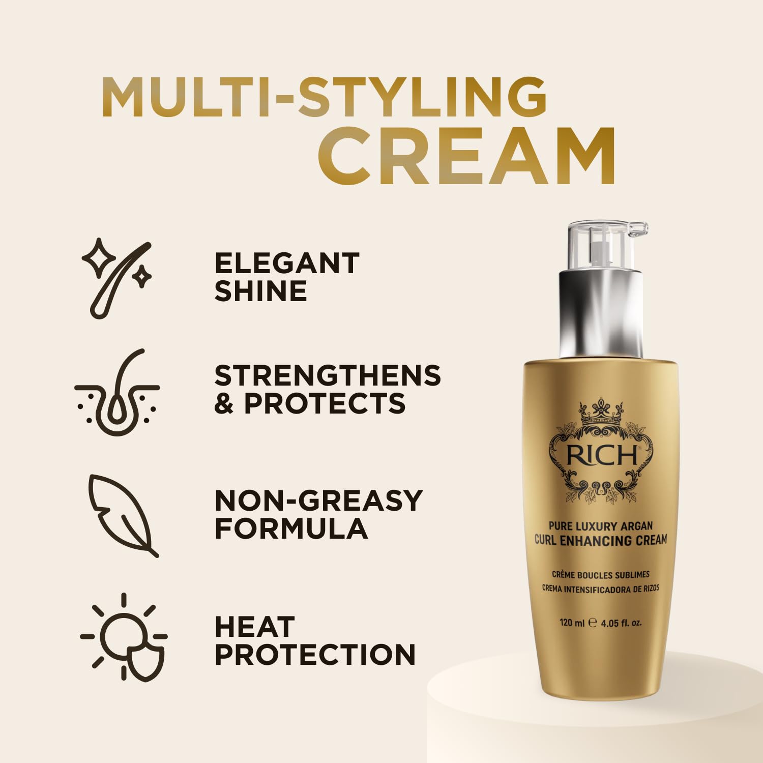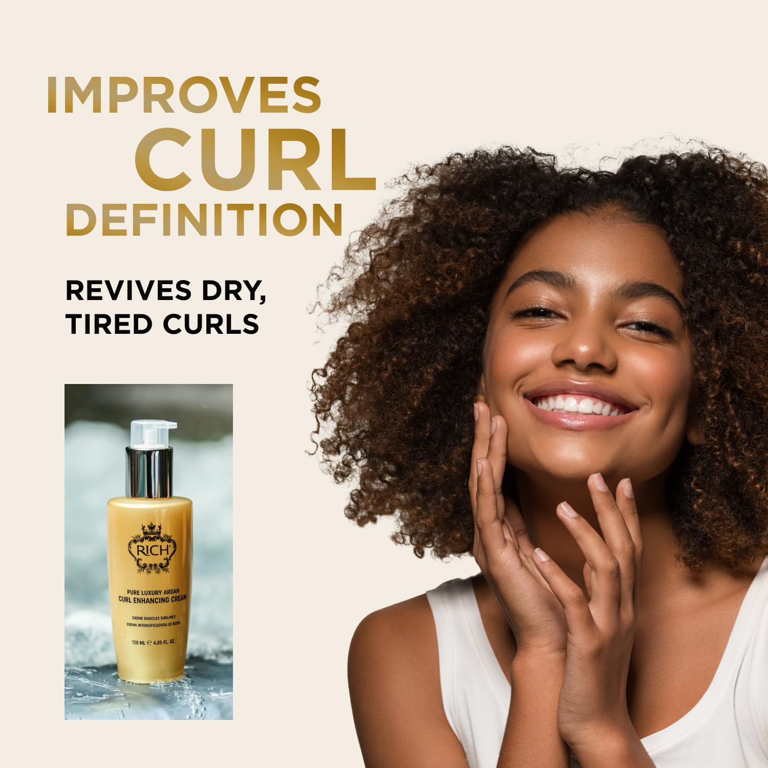 RICH Pure Luxury Curl Defining Cream for Curly & Wavy Hair – Controls Frizz and Add Natural Bounces – Enrich with Argan Oil, Coconut Oil & Hydrolyzed Wheat Protein – 4.05 Oz.