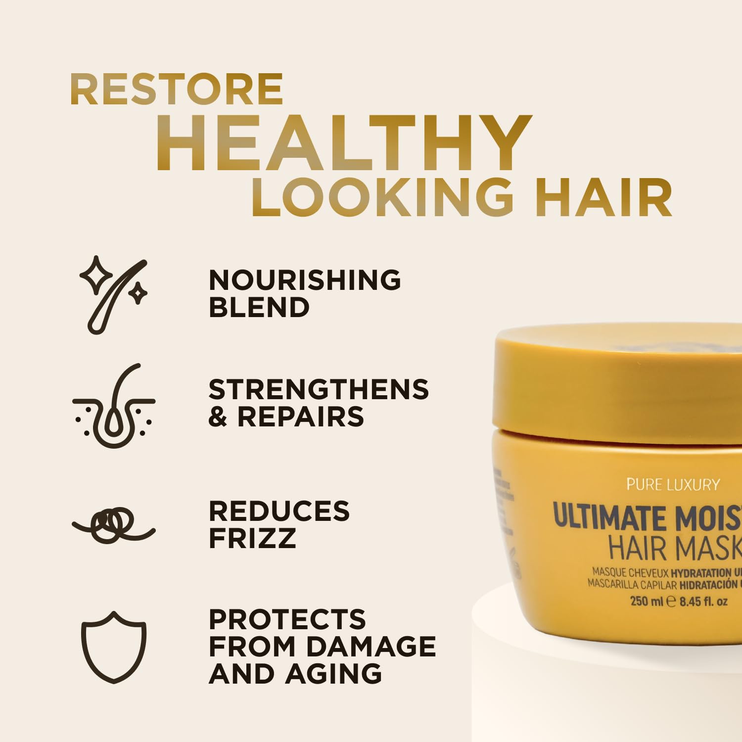 ULTIMATE MOISTURE HAIR MASK: Experience complete care with our ultimate moisture hair mask, providing intensive hydration for your locks.