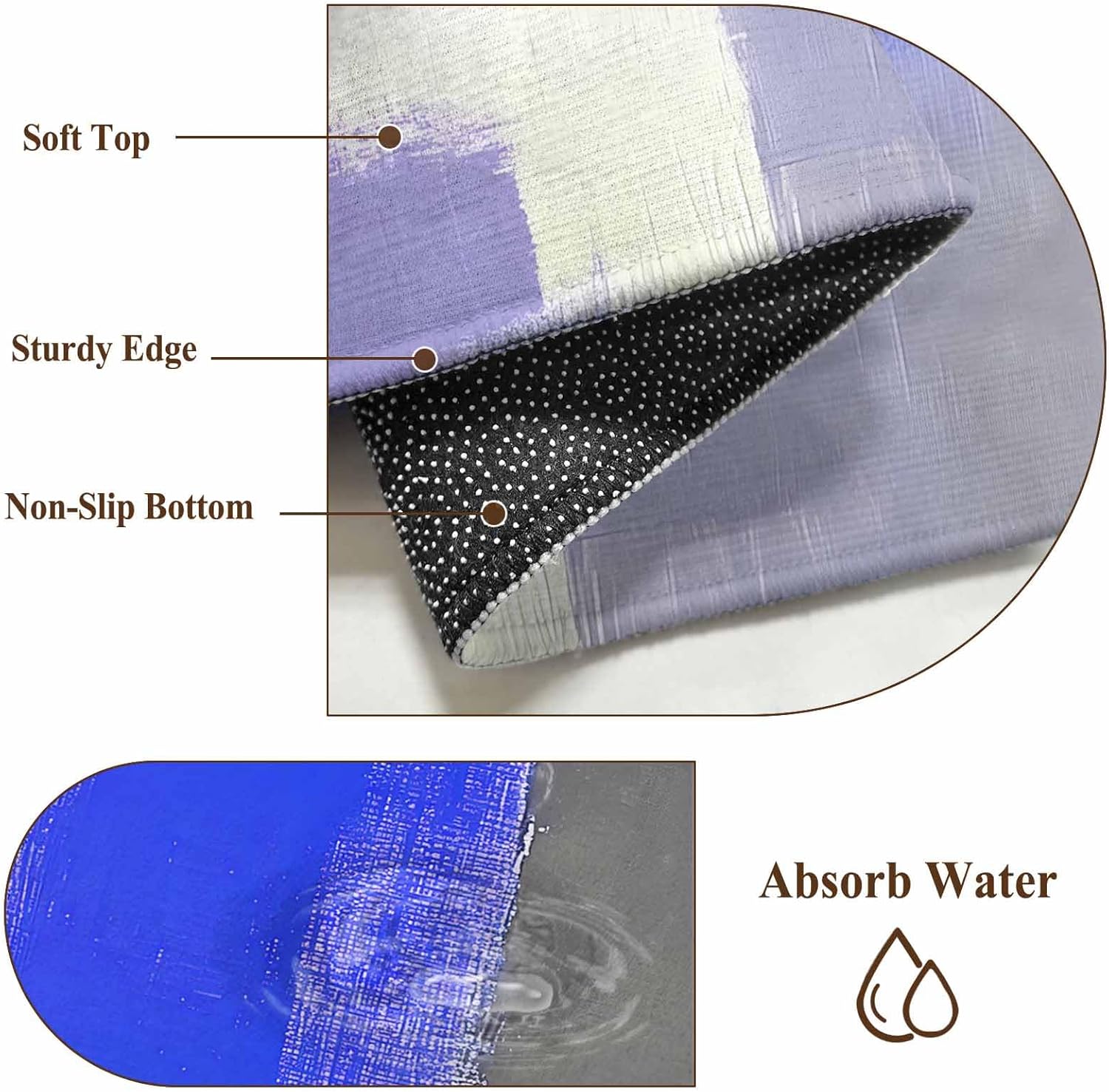 This kitchen rugs is made from high quality stain and splash proof fibers. When the water splashes on alfombra, the water will clump up and go to the top. It’s easy to spot clean.