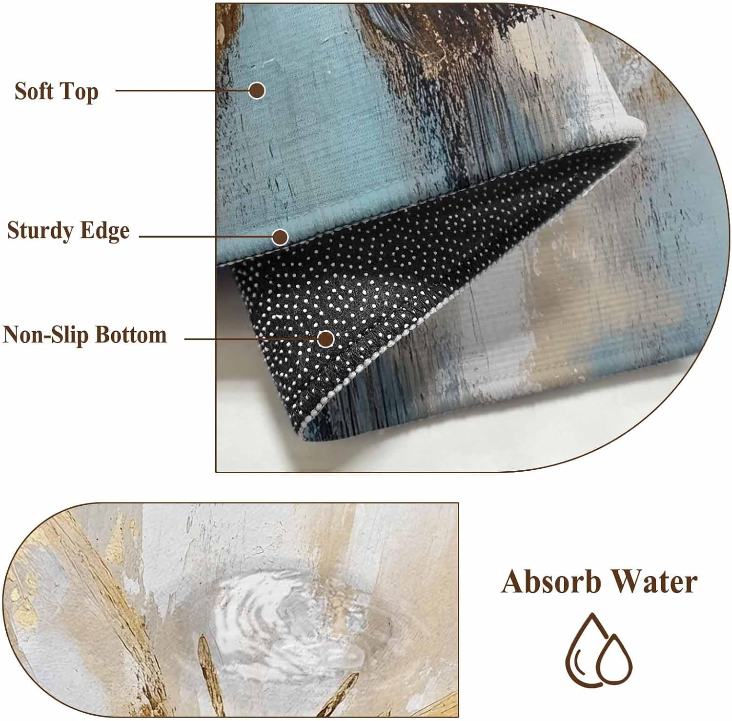 This kitchen rugs is made from high quality stain and splash proof fibers. When the water splashes on alfombra, the water will clump up and go to the top. It’s easy to spot clean.