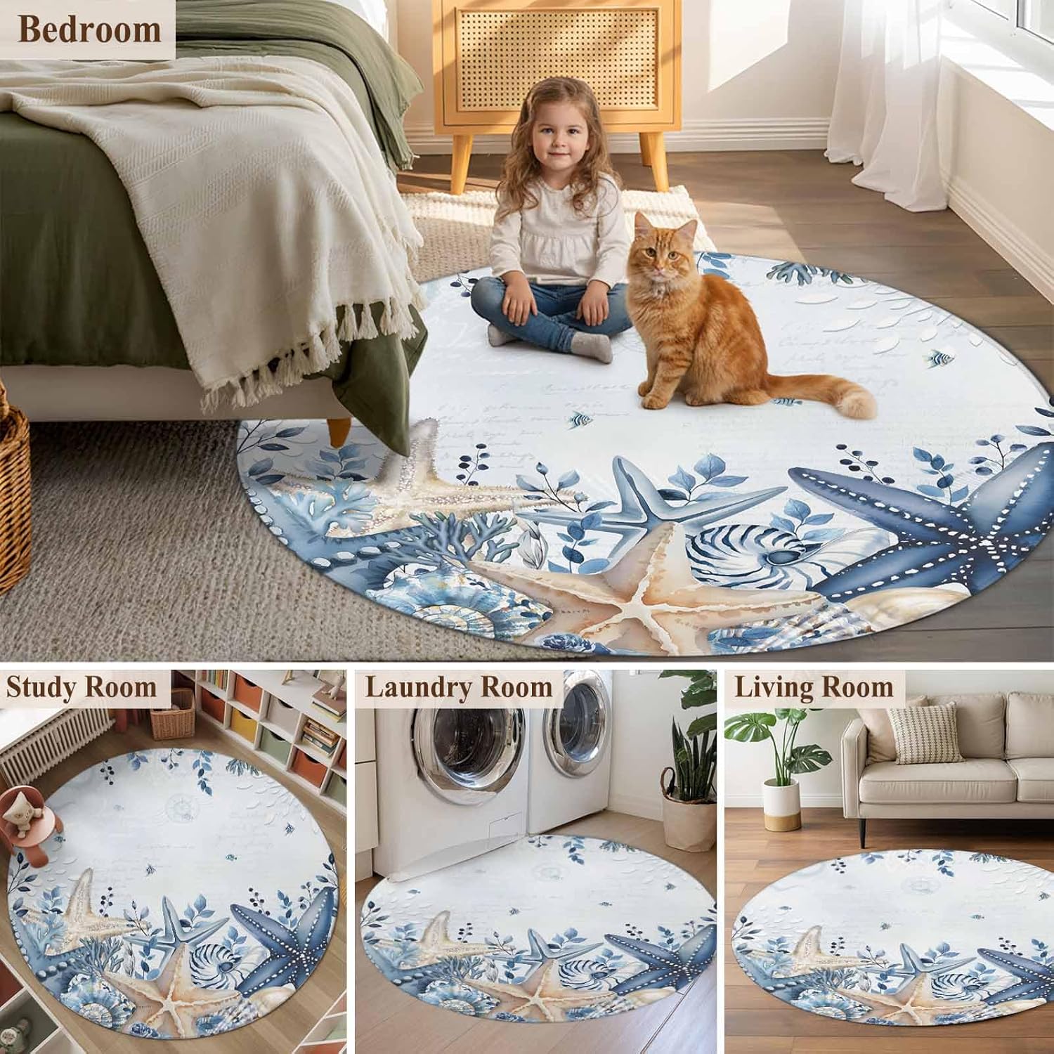 Be the first to review “Round Rugs 4Ft, Blue Starfish Coastal Washable Rug for Living Room Low Pile Indoor Floor Carpet, Eucalyptus Summer Nautical Shell Non-Skid Bathroom Rug Kitchen Runner Rugs for Bedroom”