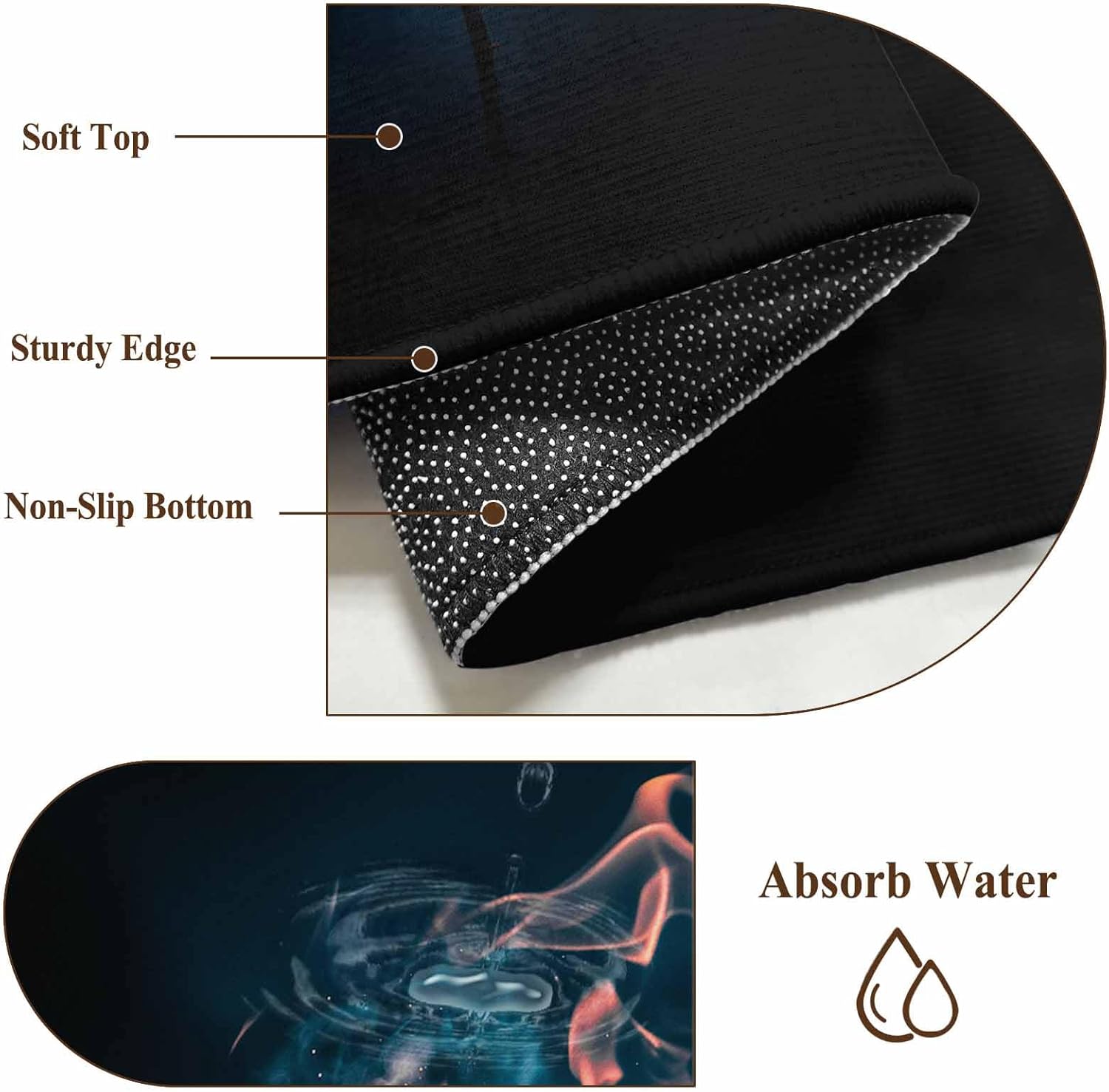 This kitchen rugs is made from high quality stain and splash proof fibers. When the water splashes on alfombra, the water will clump up and go to the top. It’s easy to spot clean.