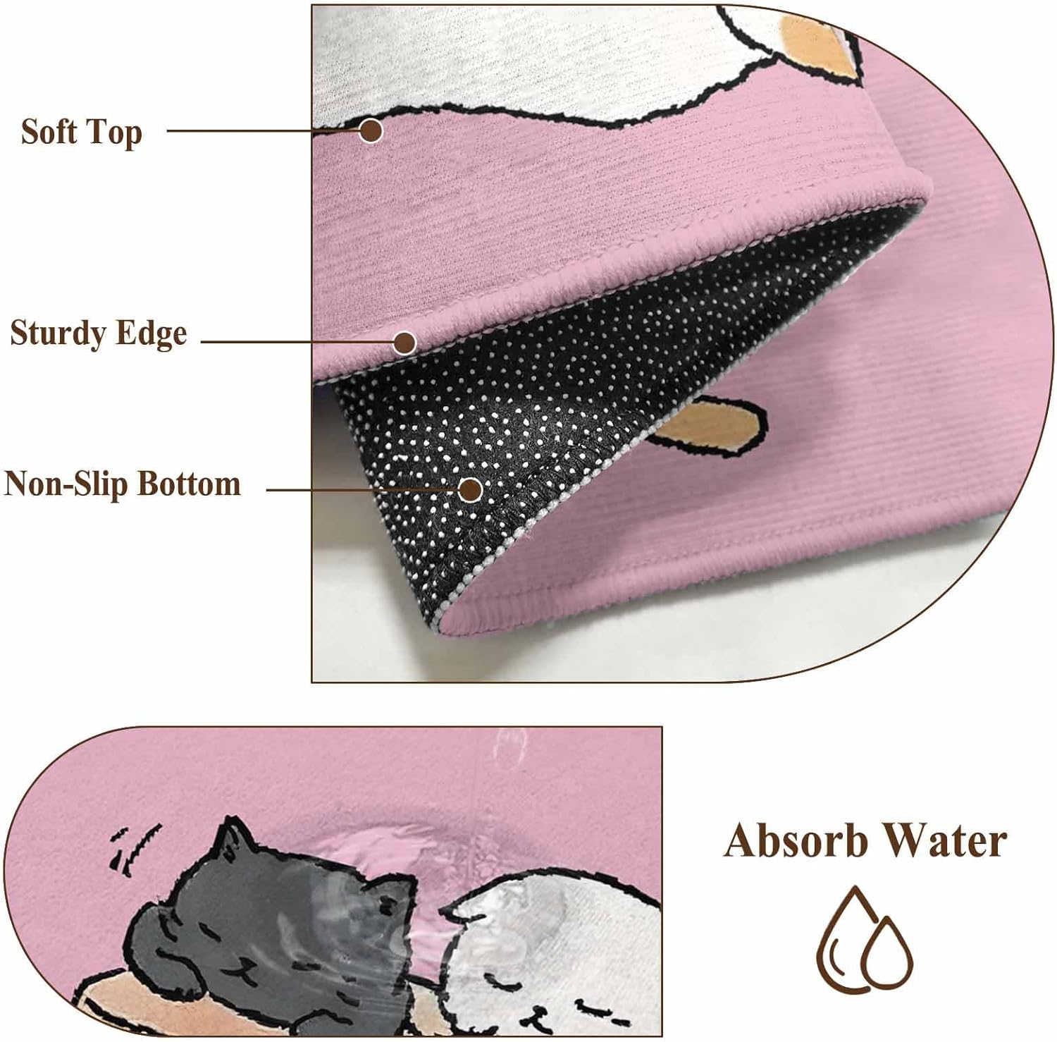 This kitchen rugs is made from high quality stain and splash proof fibers. When the water splashes on alfombra, the water will clump up and go to the top. It’s easy to spot clean.