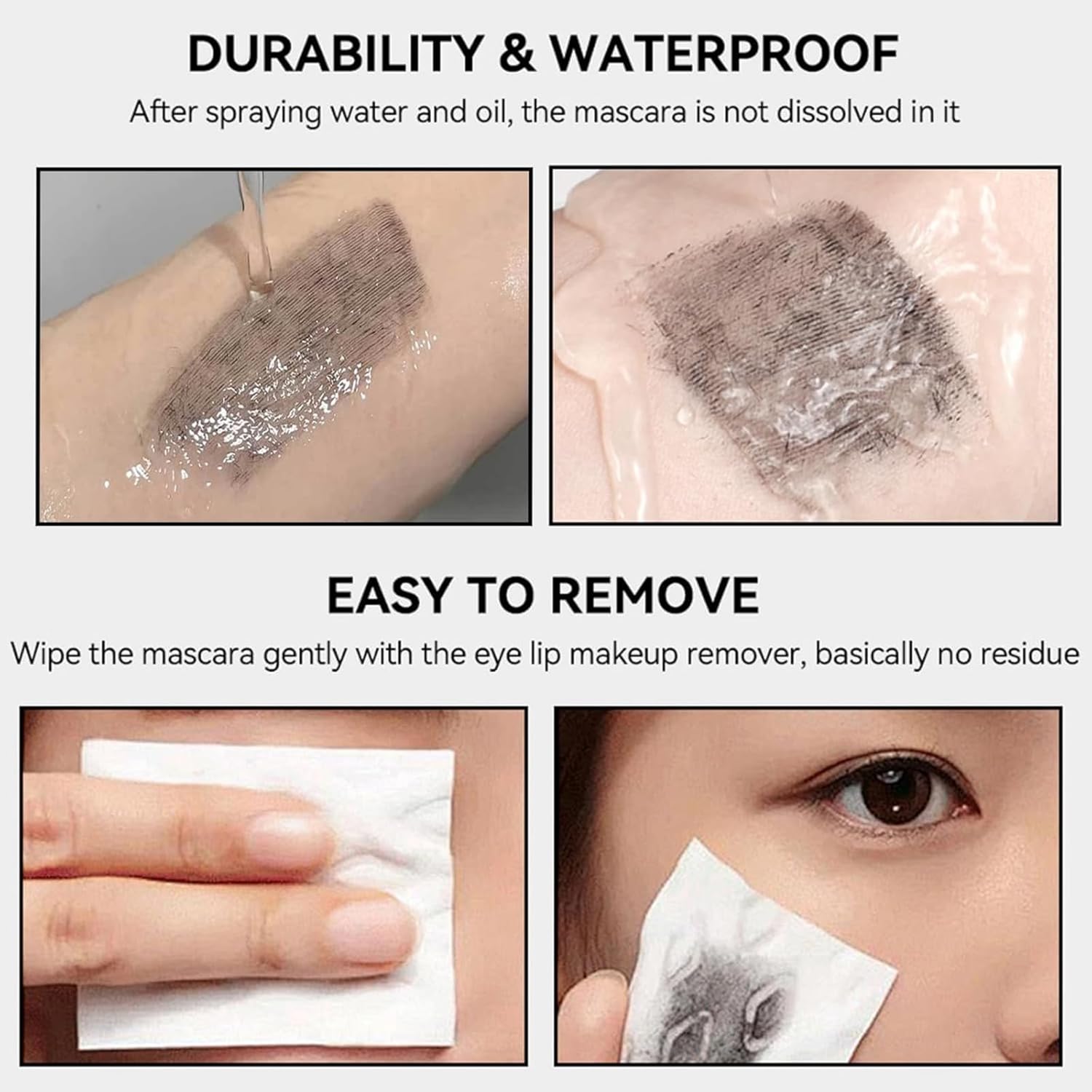Waterproof & Smudge-Proof Formula Stay flawless all day! Iron wand mascara waterproof, mascara resists rain, sweat, and humidity, ensuring zero smudging or running for 24-hour wear. Perfect for workouts, weddings, or rainy Seattle days.