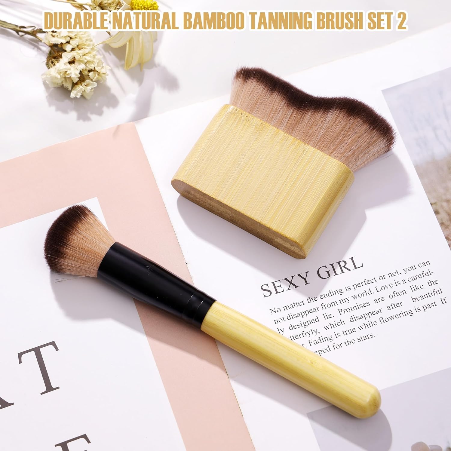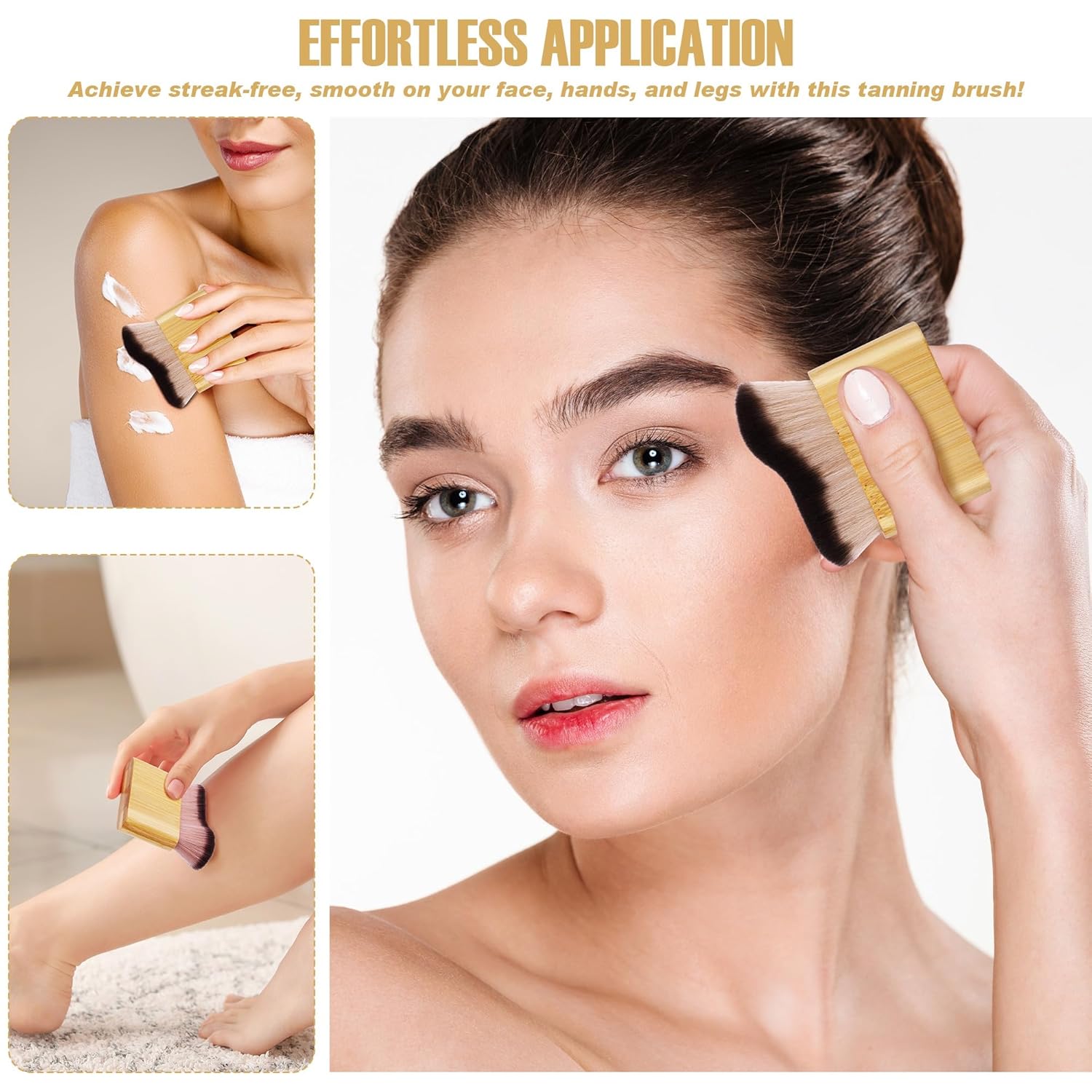 Self tanner brush set of 2: Achieve a flawless, streak-free tan with our premium self tanning brush set. The large kabuki brush for body self tanner is perfect for effortlessly covering broad areas like your legs, arms, and face, ensuring even application without missing a spot. Meanwhile, the round tanning kabuki brush is your go-to tool for tackling hard-to-reach areas, such as between fingers, around ankles, and along your hairline