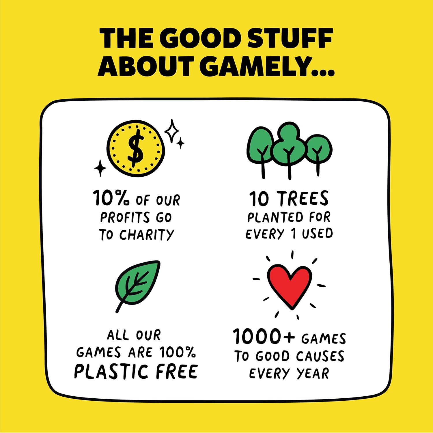 TEENY TINY PAPER! Six Second Scribbles comes in a small box, the size of four packs of cards, which contains small pencils and paper too. We love making small games. They are just as good for taking on the go as playing at home, and they use less of the world’s natural resources!