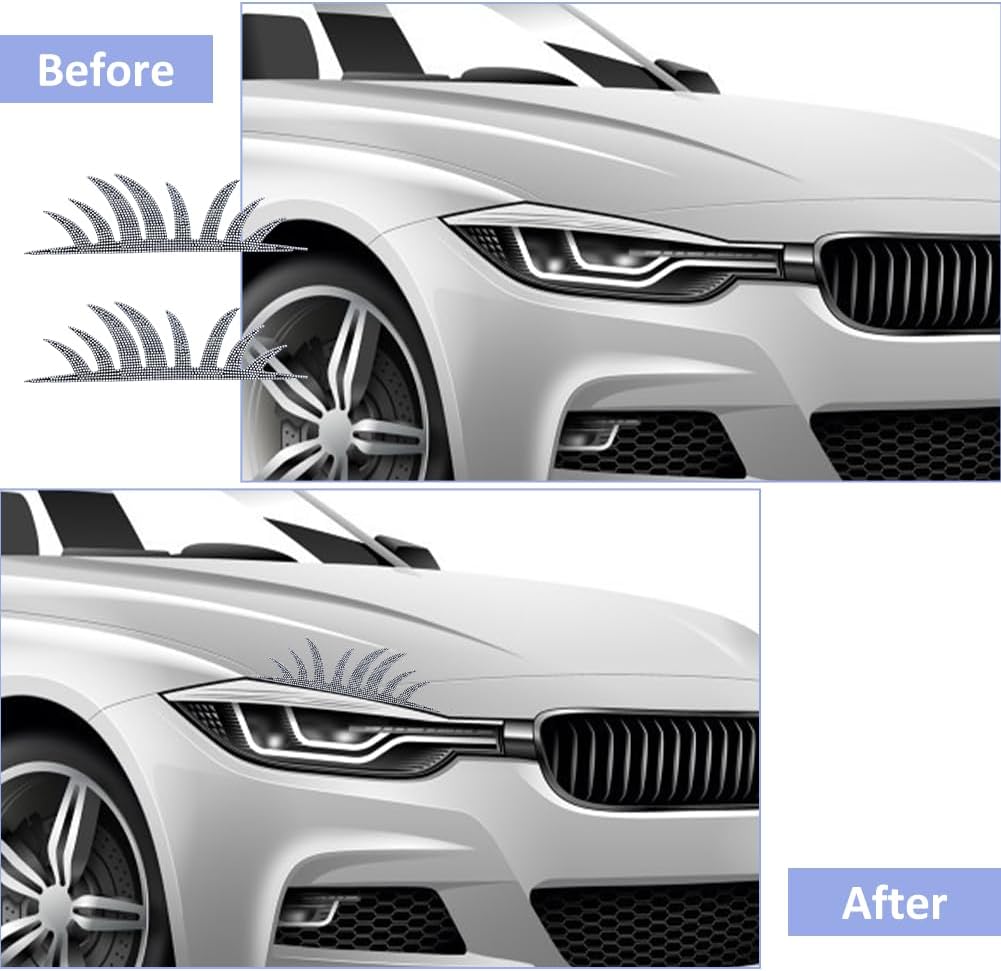 Artificial Diamond Material: Our car eyelash stickers are made of faux white diamonds. It adds a unique and sparkling look to your car, making the appearance less monotonous.