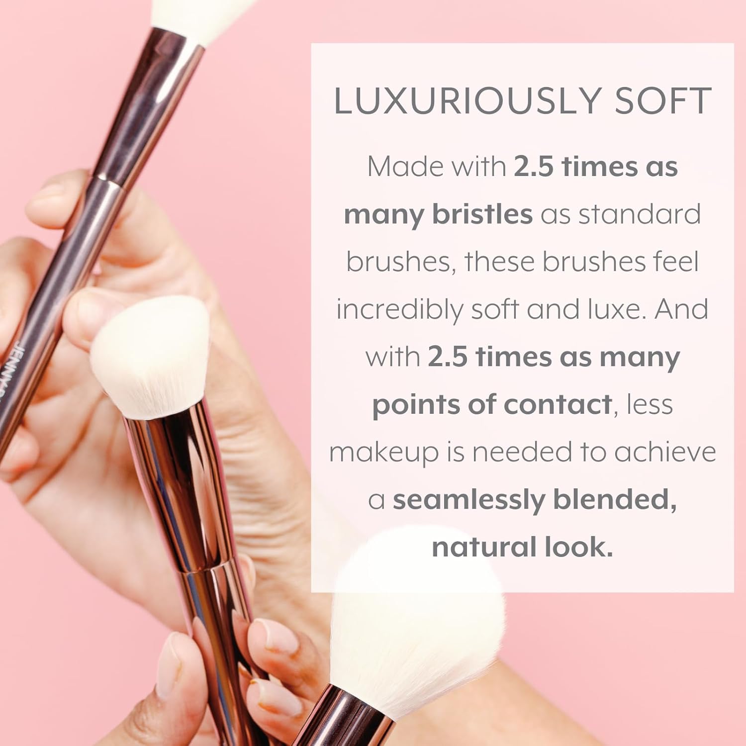 This soft but densely packed angled brush head is a multipurpose multitasker that can be used for application of any complexion product, whether it’s cream, liquid or powder. Use in a stippling motion for more opaque coverage or gently drag or swirl for a more sheer application of foundation, contour, blush, bronzer, highlighter or powder. This brush can be used to build coverage from sheer to full, without leaving streaks. Wash with Jenny Patinkin Luxury Vegan Makeup Brush Soap.