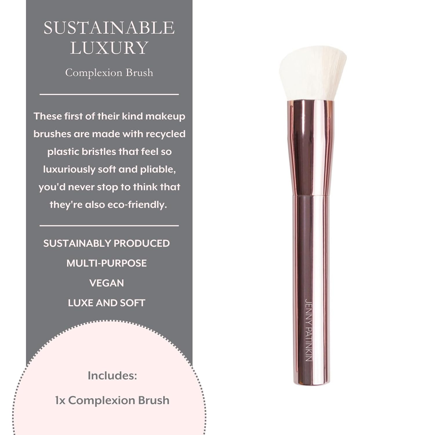 This soft but densely packed angled brush head is a multipurpose multitasker that can be used for application of any complexion product, whether it’s cream, liquid or powder. Use in a stippling motion for more opaque coverage or gently drag or swirl for a more sheer application of foundation, contour, blush, bronzer, highlighter or powder. This brush can be used to build coverage from sheer to full, without leaving streaks. Wash with Jenny Patinkin Luxury Vegan Makeup Brush Soap.