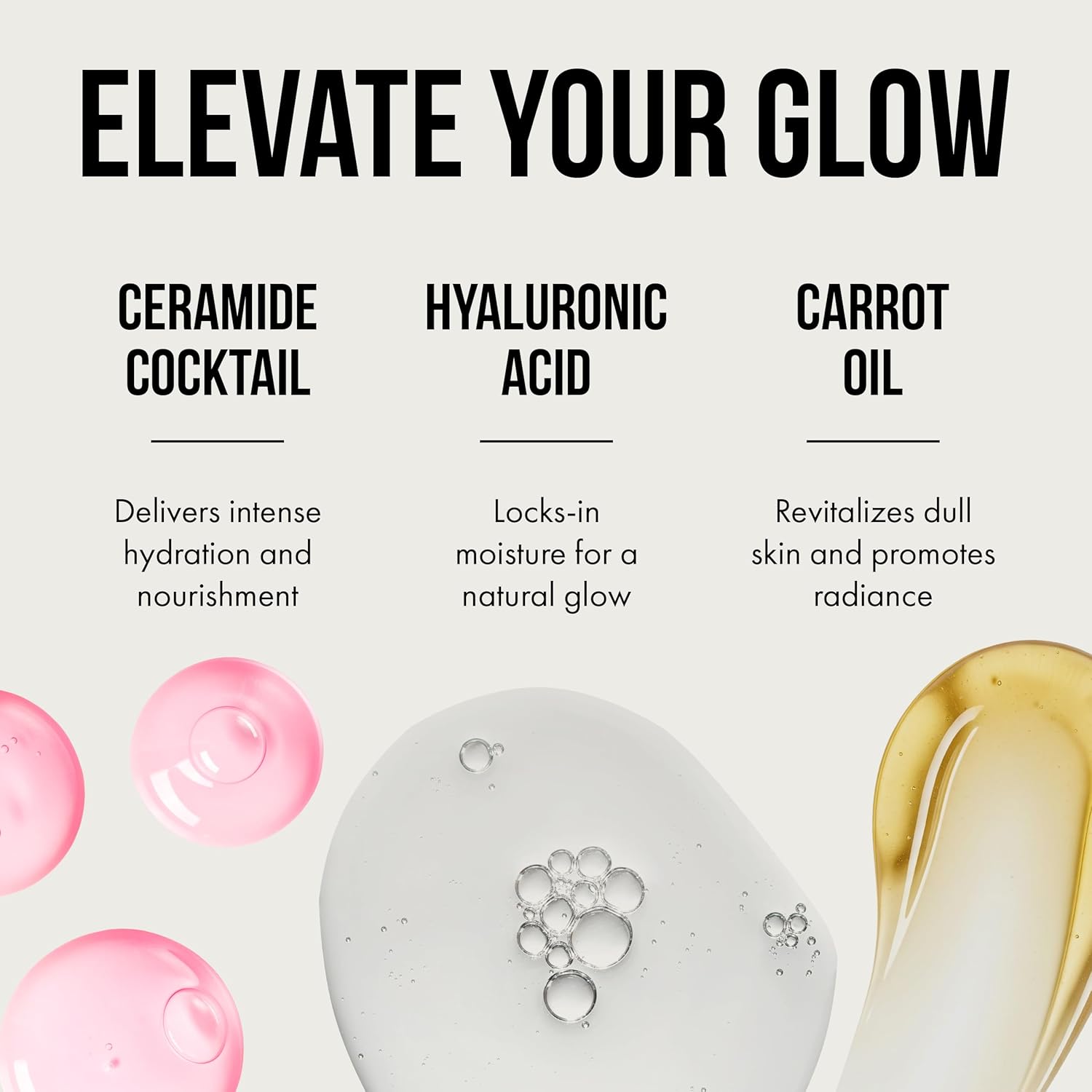 Hyaluronic & Ceramide Cocktail: Gives skin intense hydration and nourishment for an alluring, radiant-looking finish
