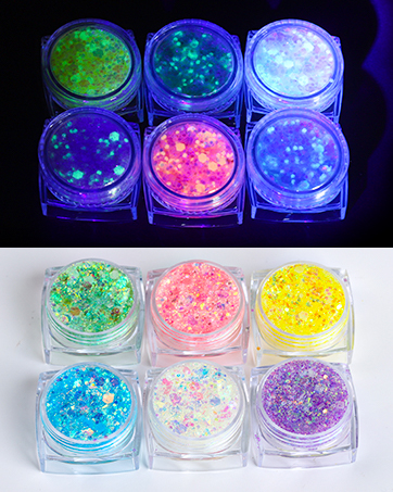 Wide Application Body Glow: Express yourself with colors that pop vividly under black light and glow in the dark! Our chunky glitter can be applied to your body, face, nails, or hair, ensuring that you stand out at rave parties, glow party, music festivals or concerts