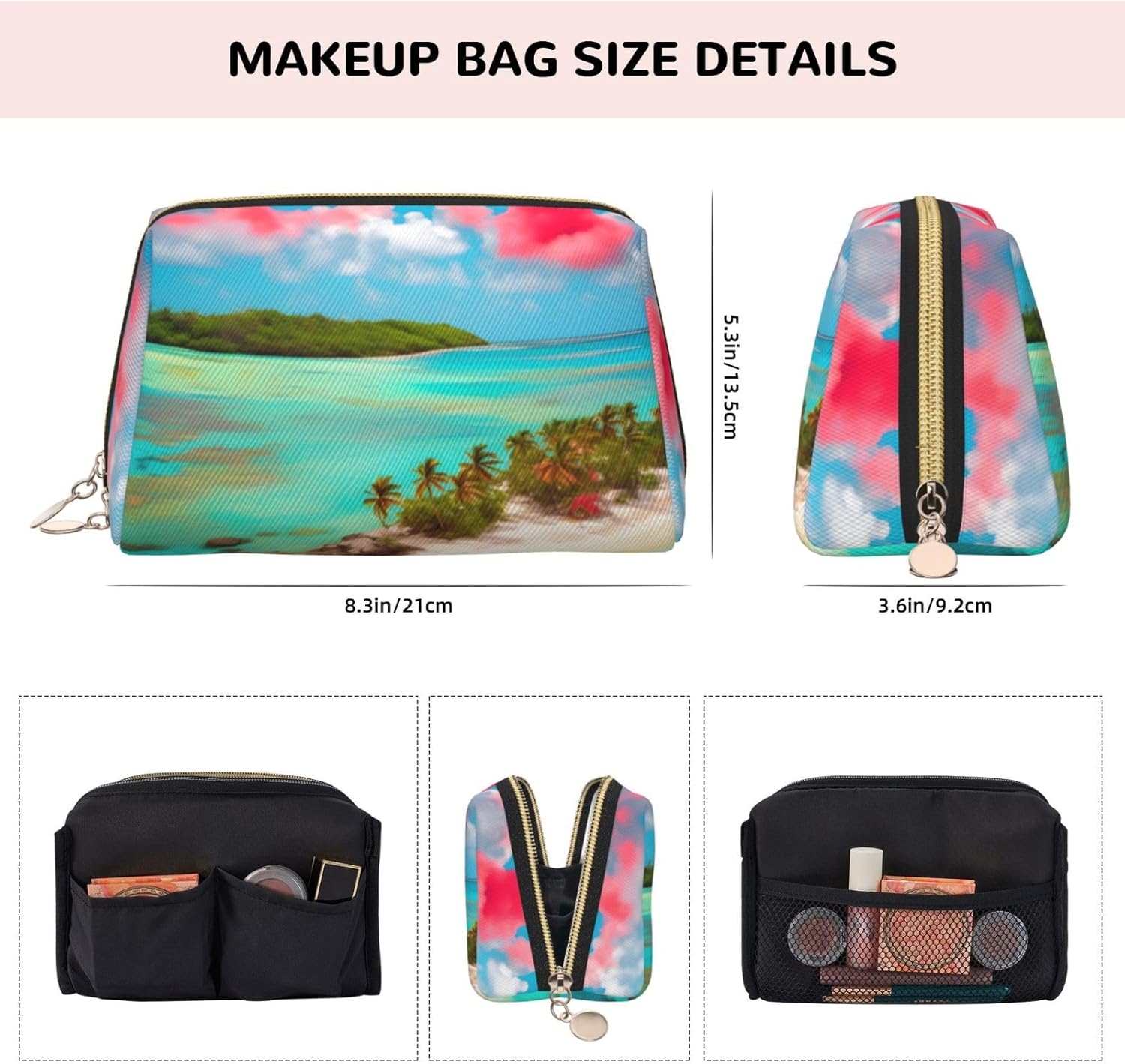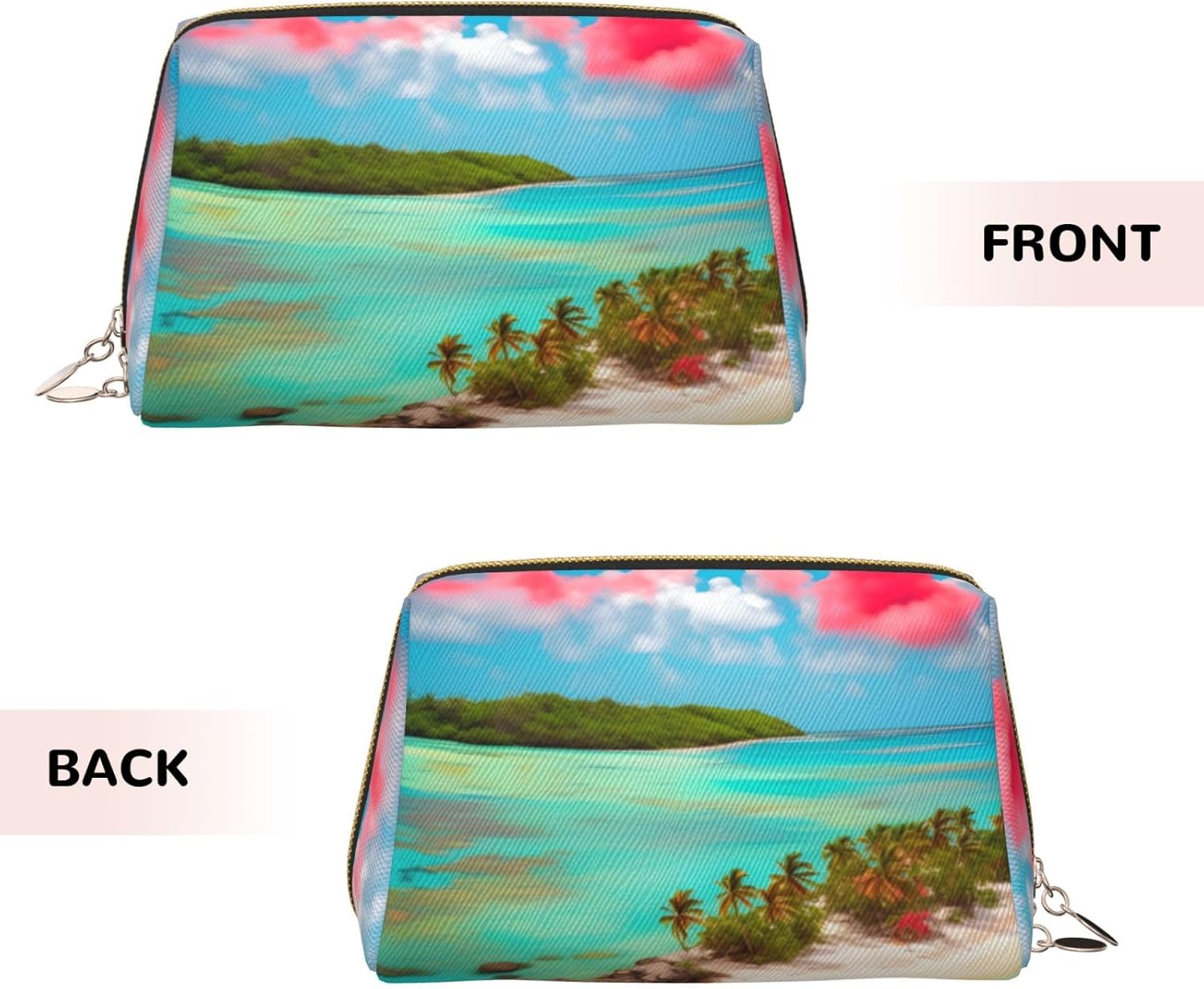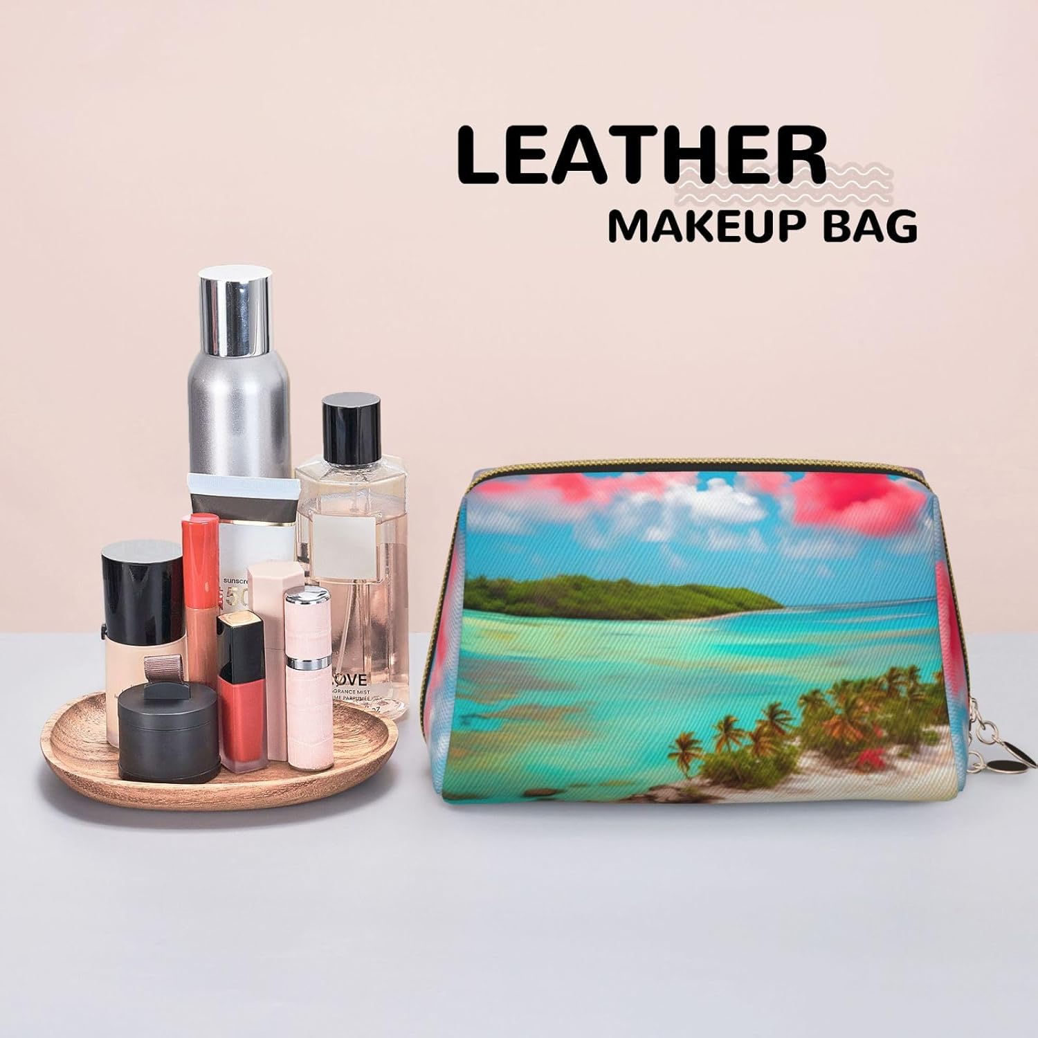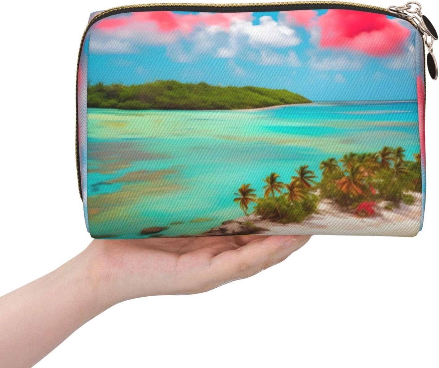 The Deep Ocean Patterned Leather Cosmetic Bag – Perfect for Carry-On or Home Organization, Caribbean Scenery, One Size