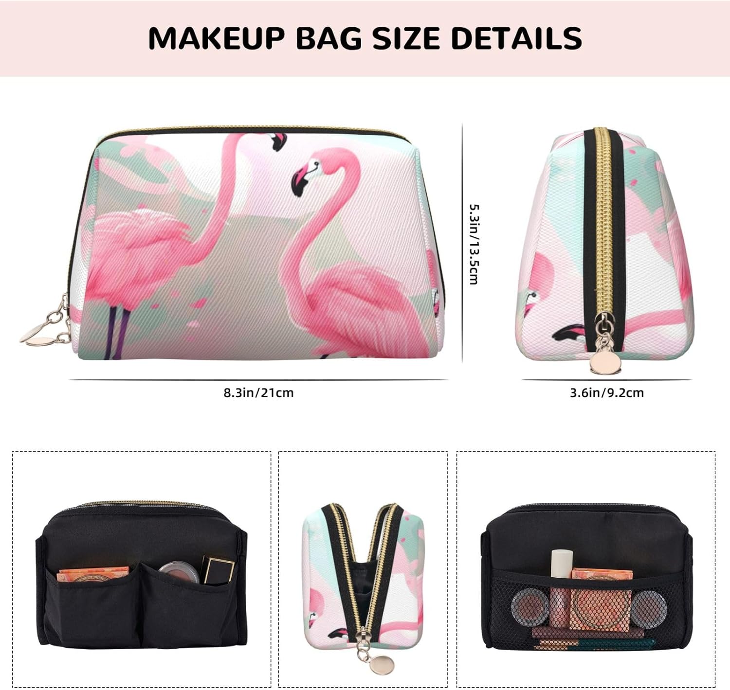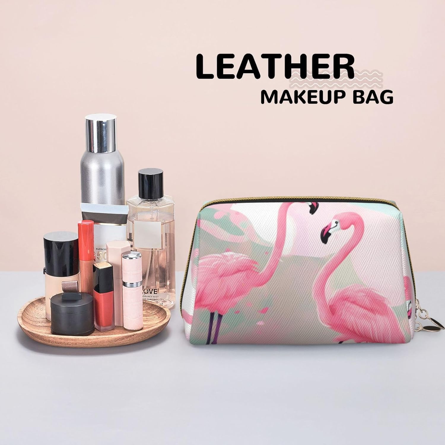 For those who value everyday convenience, this Love Flamingo printed leather portable cosmetics bag is a perfect companion! Its unique zipper design allows for smooth closure and maximum opening, allowing you to quickly find your eyeshadow, lipstick, pressed powder, and more, whether you’re organizing your makeup at home in the morning or needing a touch-up on the go. The high-quality foam lining is incredibly practical, ensuring your foundation and eyeshadow palettes are securely cushioned and protected from bumps and bumps, even when you toss the bag in your backpack. Even more impressive is the premium leather’s smooth, textured feel, and the beautiful print creates a striking aesthetic – it feels like a stylish accessory when carried in your hand, or adds a cozy touch to your desk or dressing table. Whether carrying it on your daily commute or packing it in your luggage for a short trip, this bag combines practicality and style, making organizing and applying your makeup a breeze and a joy.