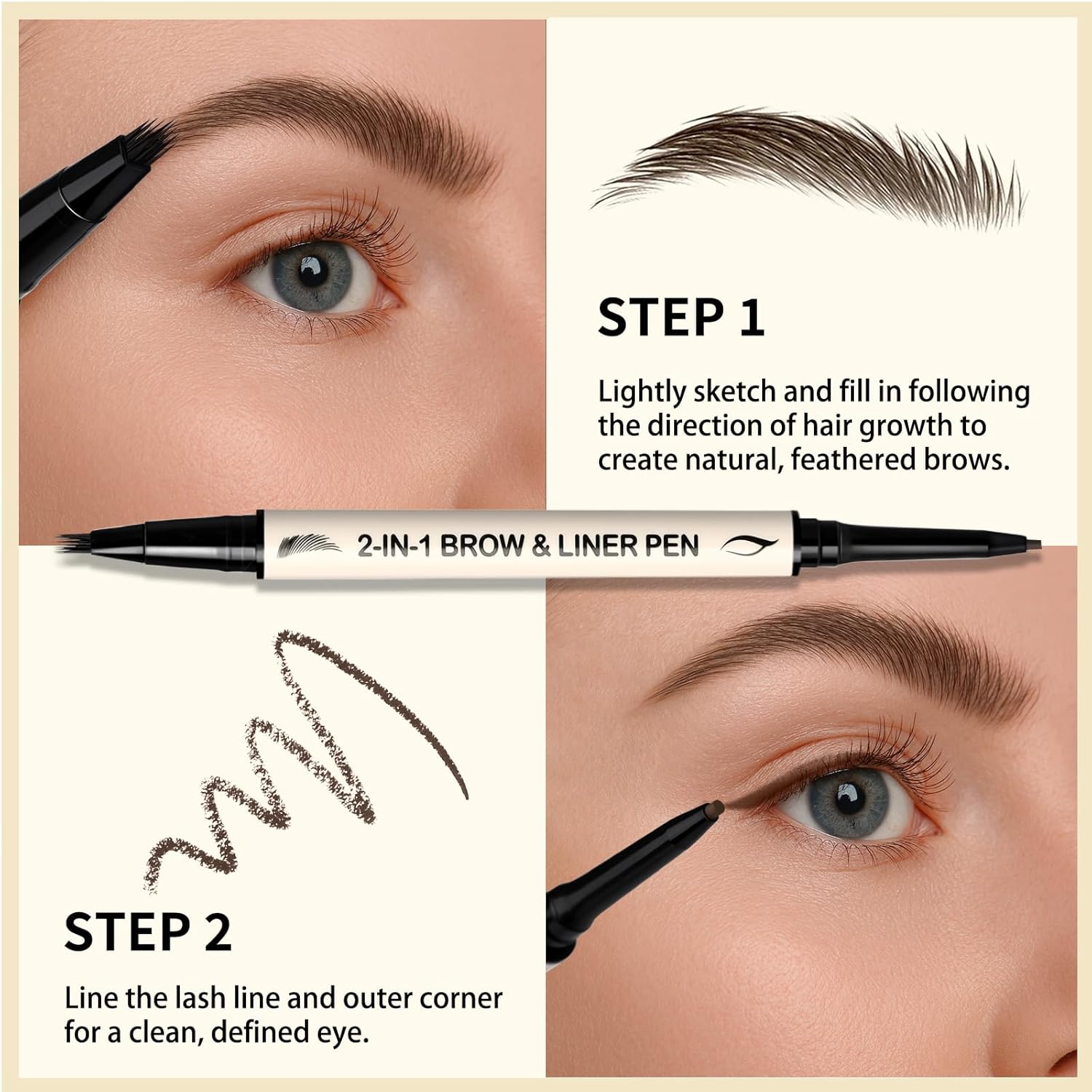 ➤ Compact & Travel-Friendly : One sleek pen, two makeup essentials. Keep this space-saving tool in your purse or travel bag for anytime brow touch-ups and eye makeup on the go.