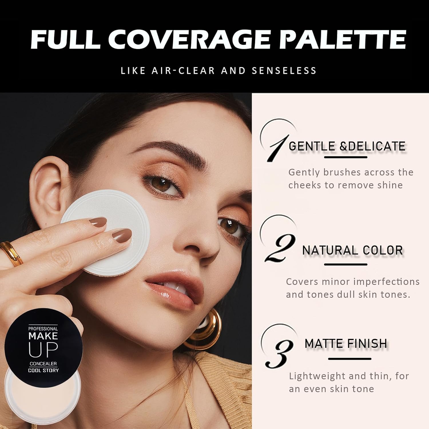 【Full Coverage Concealer】 This under-eye concealer has super adhesion, brightens the eye area, and more effectively covers dark circles, under-eye bags, freckles, pimple marks and other cover facial imperfections. An excellent and indispensable product for beauty lovers!