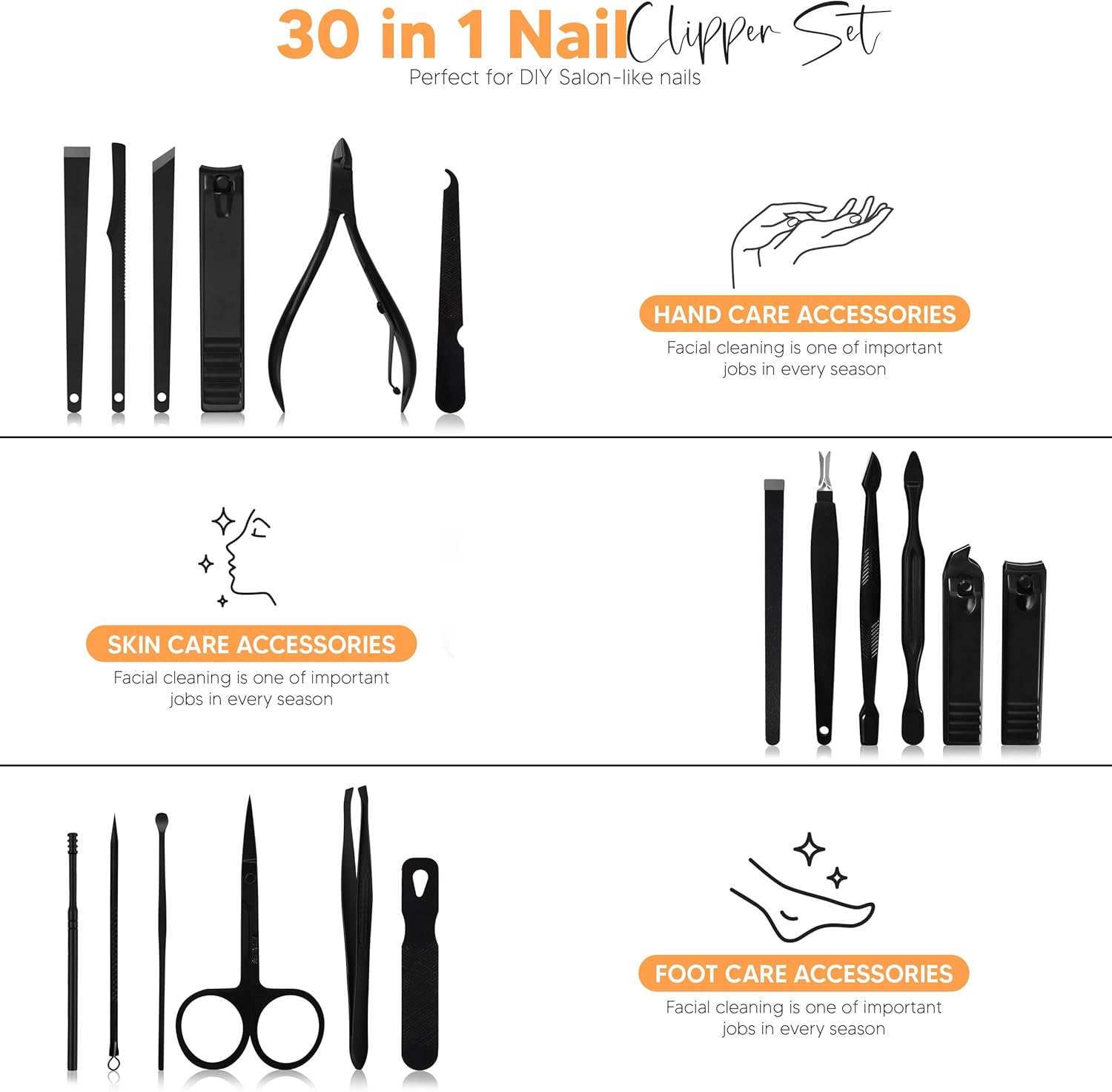 Versatile – Our kit is designed purposefully to perform a variety of functions including hand care, foot care and facial treatment. Enjoy a trouble-free manicuring, pedicuring, and eyebrow shaping experience, all done in one valuable set.