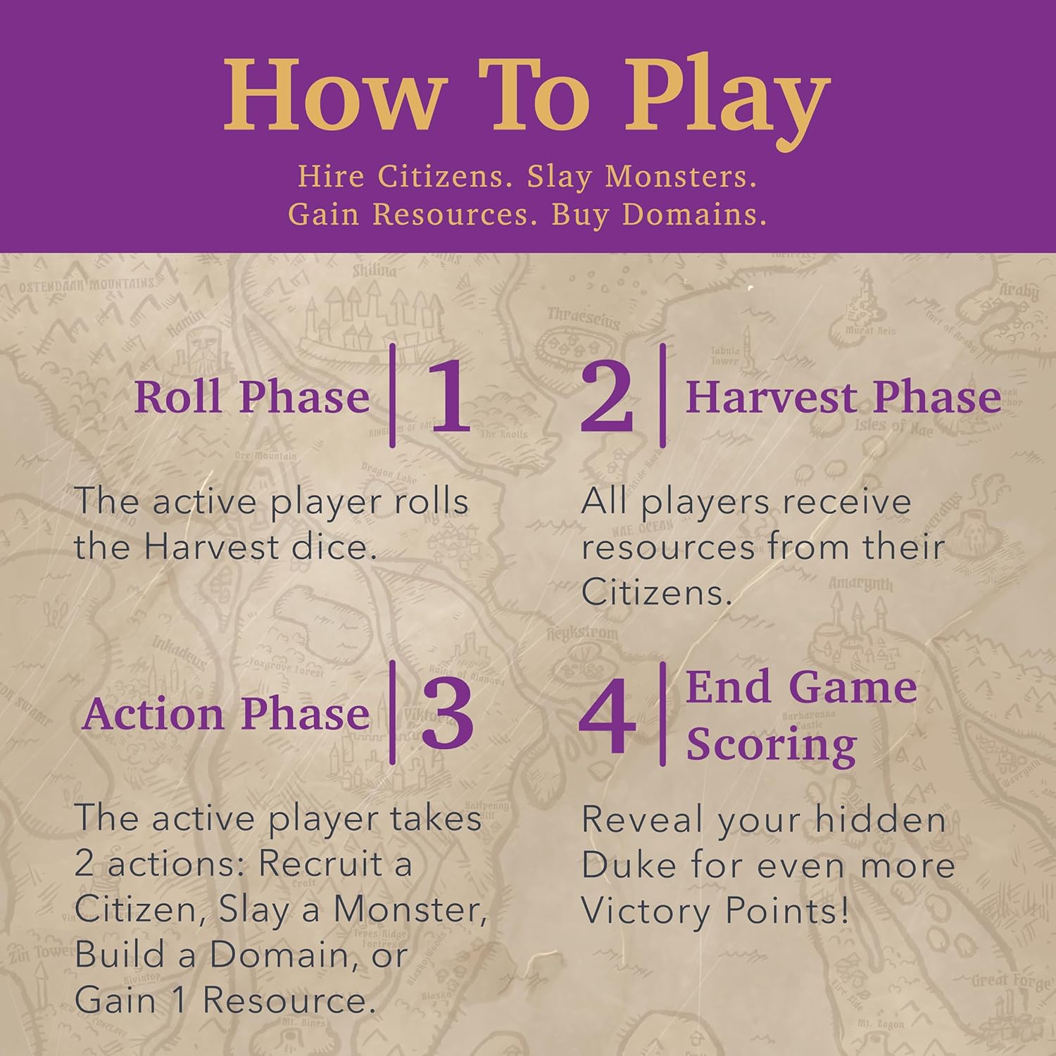 Build and Defend Your Kingdom: Immerse yourself in the fantasy world of Valeria, where you recruit citizens, defeat monsters, and claim domains to expand your kingdom and earn victory points.