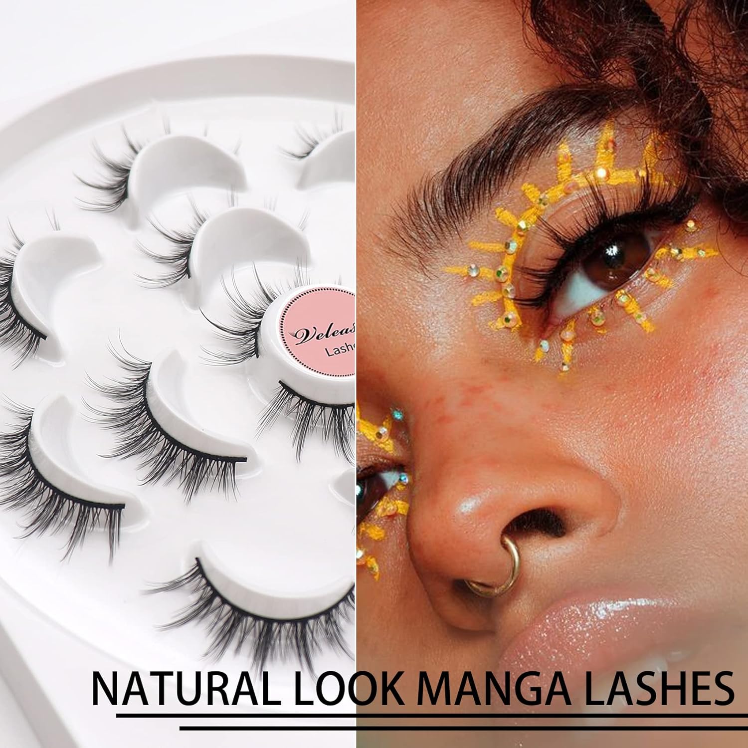 Manga Lashes: Veleasha lashes contains 7 pairs of perfect looking so beautifu eyelashes. On the eyes like a anmie book heroine bright, beautiful. Crafted from the finest imported faux mink fibers, these lashes are as soft as natural eyelashes, ensuring exceptional comfort during use.