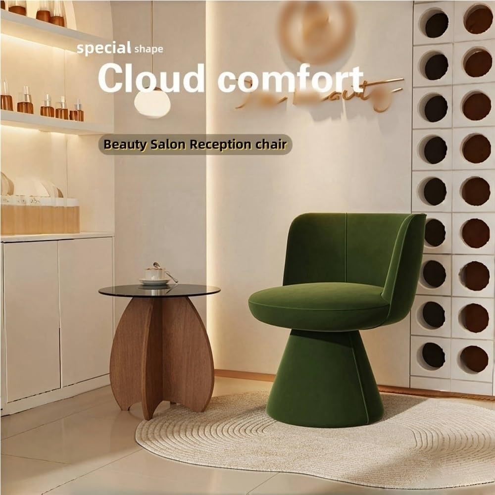 This velour vanity chair with a wooden base—with its cloud-like softness, body-hugging curves, and versatile design—redefines “comfort-focused seating” by merging luxury with practicality for both home and professional use.