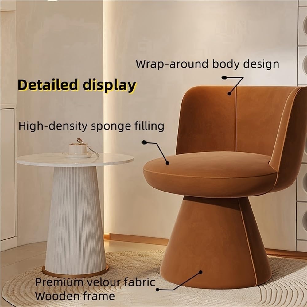 This velour vanity chair with a wooden base—with its cloud-like softness, body-hugging curves, and versatile design—redefines “comfort-focused seating” by merging luxury with practicality for both home and professional use.