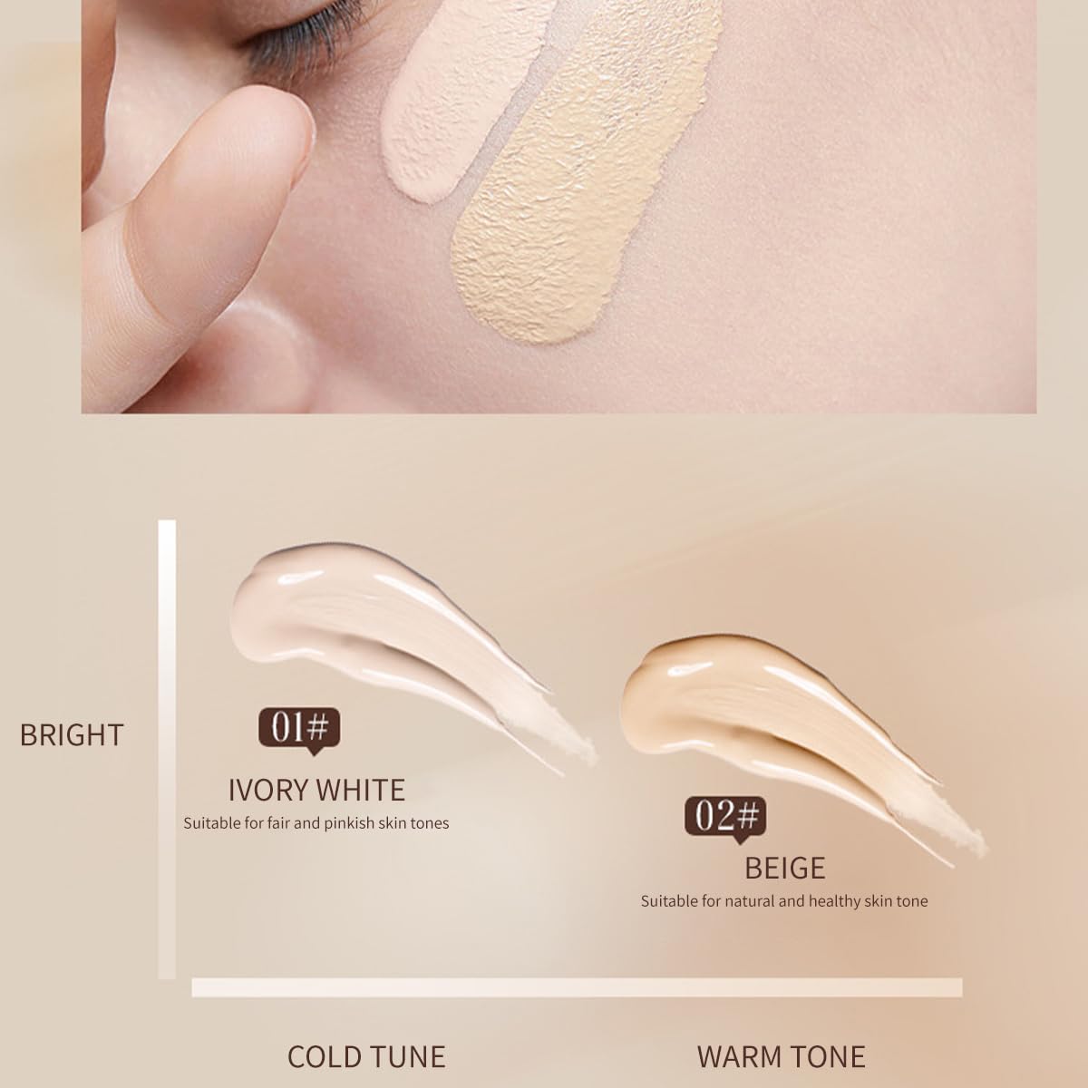24-Hour Long-Lasting & Fade-Resistant:Formulated with mineral oil (smoothes texture) and dimethicone (long-wear matrix), this foundation resists oxidation, fading, and caking for 24-hour wear. Perfect for busy schedules, humid climates, or special events.