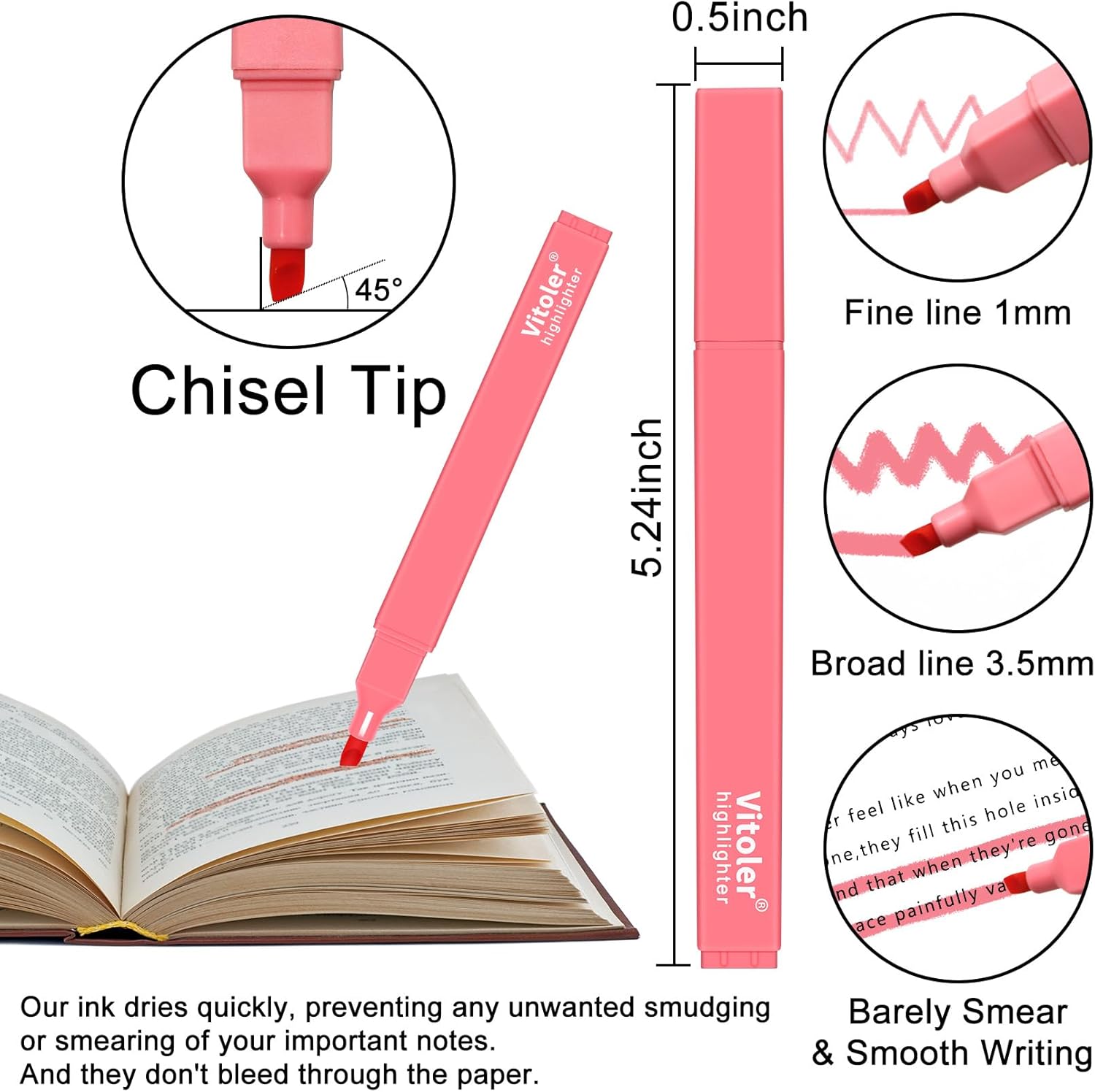 【Smooth Writing】The Vitoler highlighters are perfect for highlighting your scriptures, notes, journals, or any books you want to read. Free-flowing ink with a soft chisel tip lets you write everything smoothly.